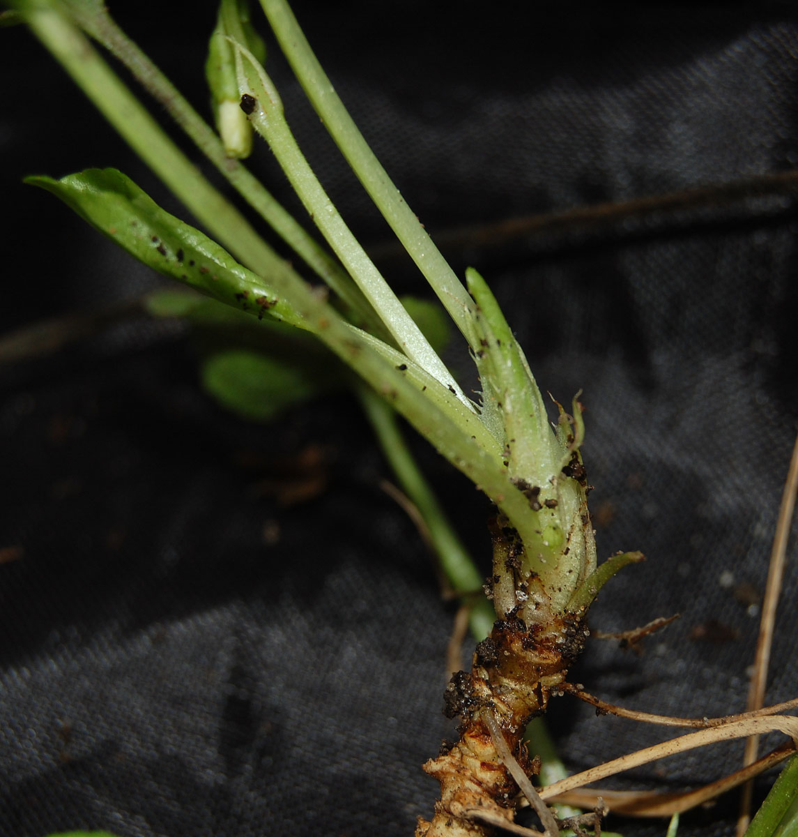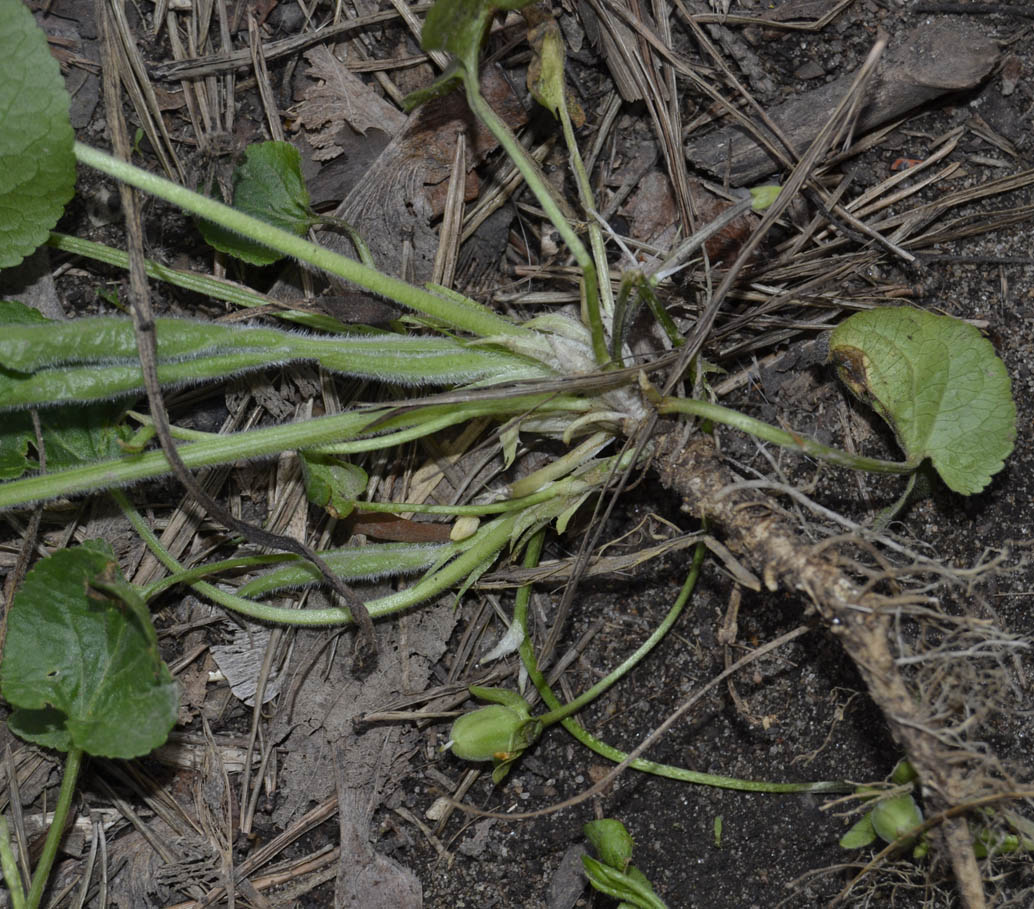 | Юлия Шнер | Имеется длинное ползучее корневище, коробочка, насколько я разглядела, голая, листья мягкоопушенные, на венчике белое пятно. |