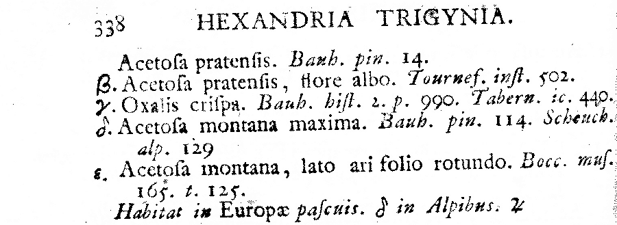 Протолог Rumex acetosa L. (Species Plantarum 1: 337. 1753 [1 May 1753]):