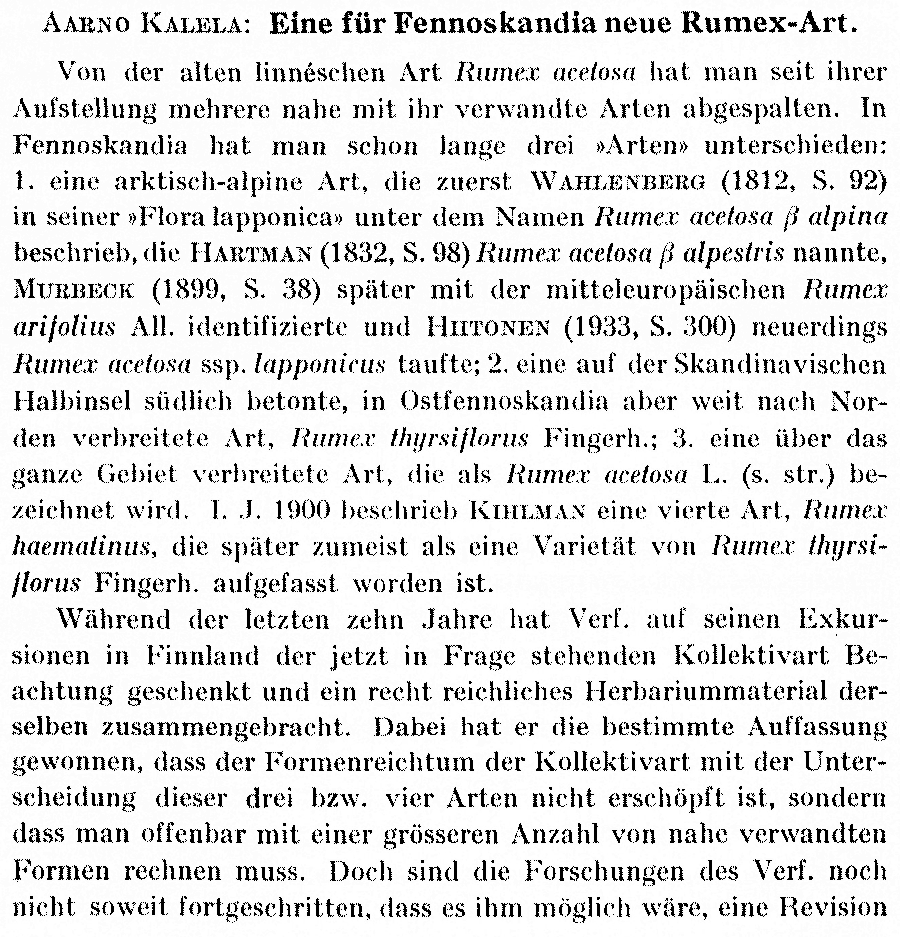 Протолог Rumex fontano-paludosus Kalela (Annales Botanici Societatis Zoologicae-Botanicae Fennicae "Vanamo" 14(2): 10. 1940):