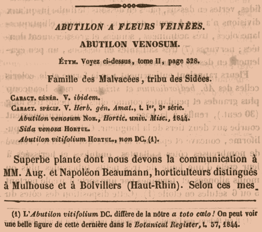 | Андрей Ковальчук | Описание Abutilon venosum Lem. было опубликовано также в Flore des Serres et des Jardins de l'Europe 2(3): t. 5. 1846: