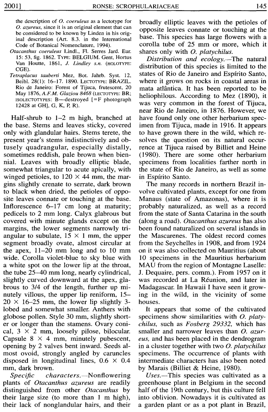 | Андрей Ковальчук | Обнародование комбинации Otacanthus azureus (Linden) Ronse (Brittonia 53(1): 144. 2001):