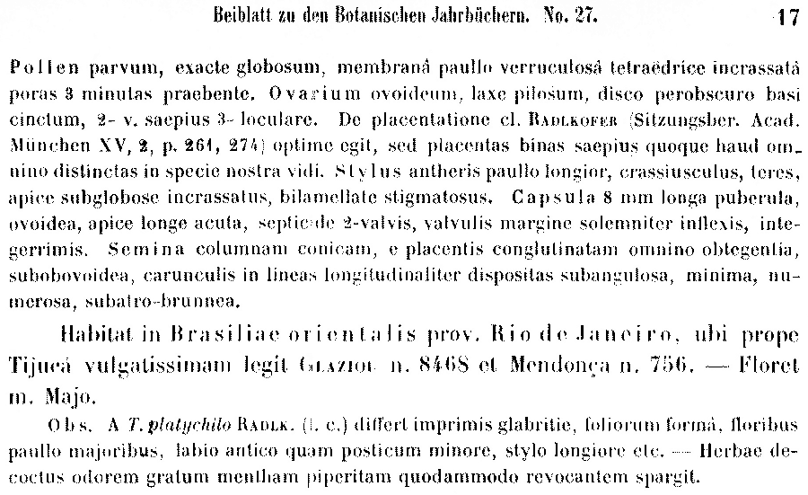 | Андрей Ковальчук | Название Stemodia azurea Linden было обнародовано в работе Catalogue des Plantes Exotiques, Nouvelles et Rare, Cultivees dan les Serres de J. Linden 17: 6. 1862. К сожалению, найти первоописание не удалось.