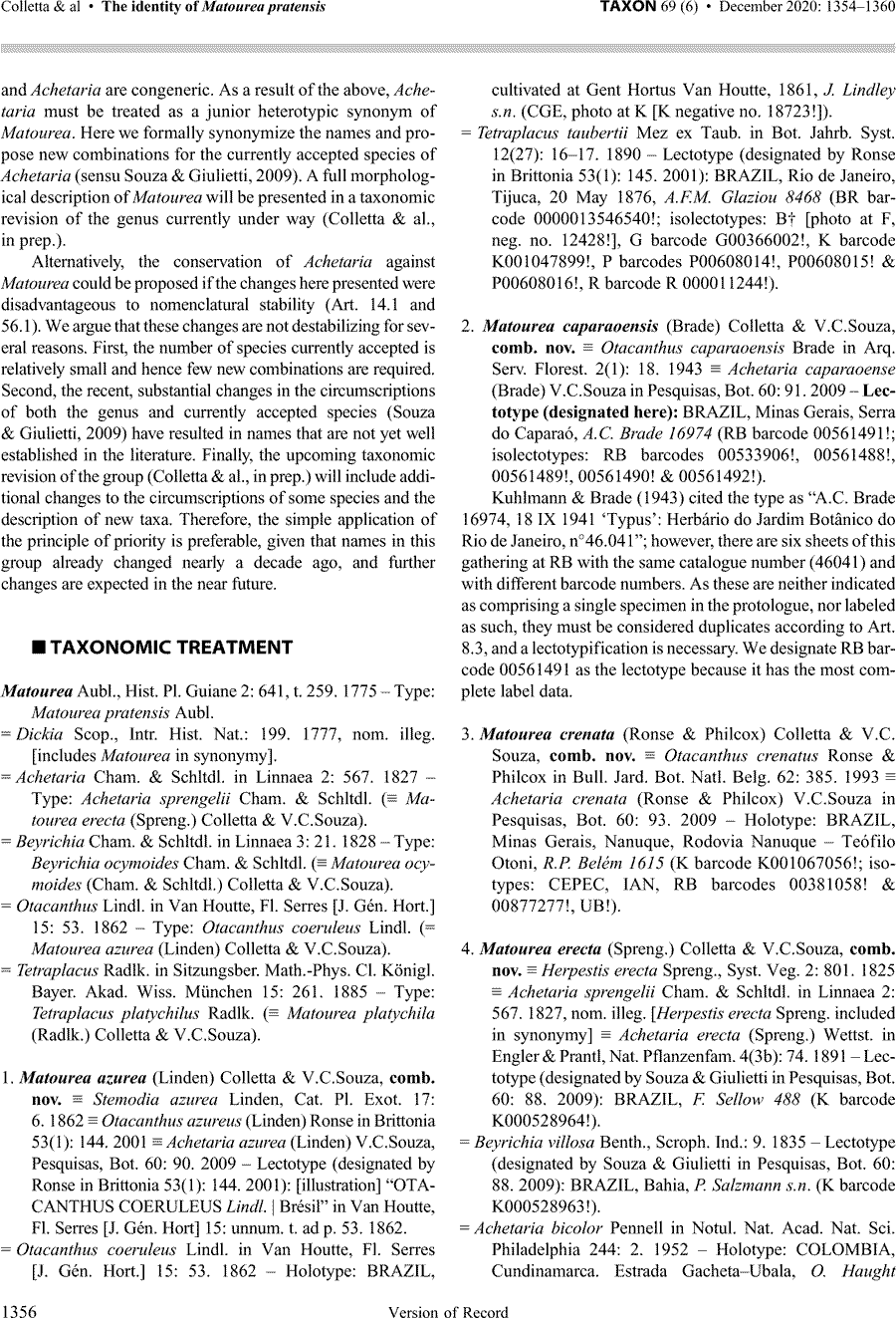 | Андрей Ковальчук | Согласно свежей статье, этот вид теперь следует называть Matourea azurea (Linden) Colletta & V.C.Souza (Taxon 69(6): 1356. 2020):
