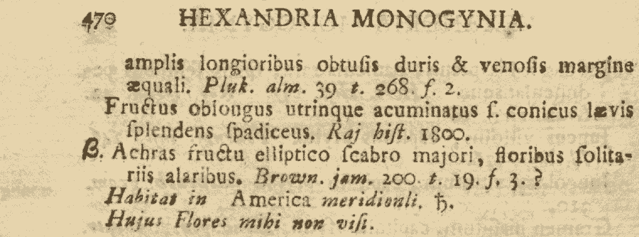 | Андрей Ковальчук | Протолог Sideroxylon sapota Jacq. (Enumeratio Systematica Plantarum, quas in insulis Caribaeis 15. 1760 (as ' Sideroxylum'  :
