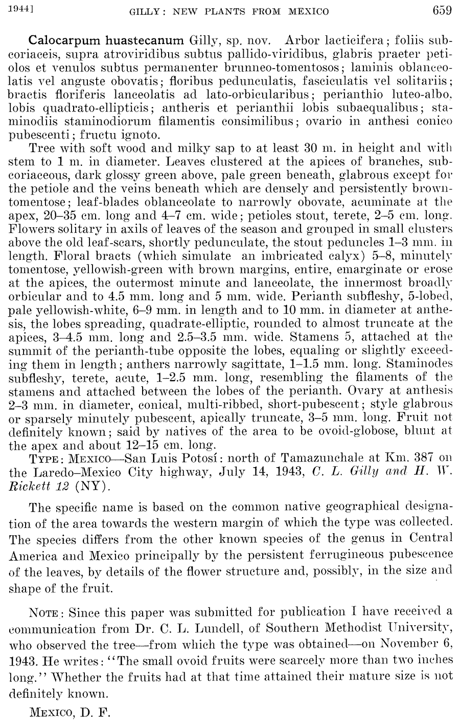 Протолог Calocarpum huastecanum Gilly (Bulletin of the Torrey Botanical Club 71(6): 659. 1944):