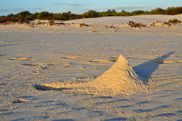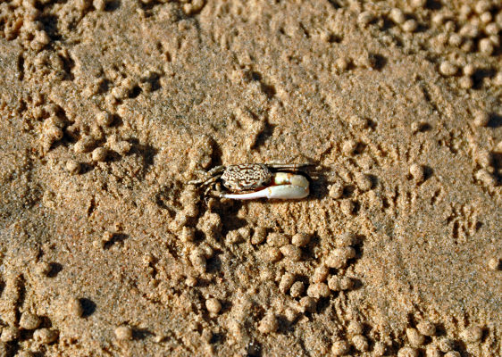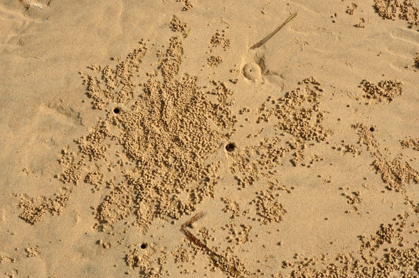 | Марина Скотникова | Эти крабы (а может, и не только они) всю ночь бродят по пляжу, так что на утро вокруг видны многочисленные загадочные следы: