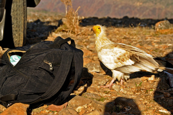 | Марина Скотникова | А из птиц самые яркие и активные там – египетские стервятники, которых мы сначала подстерегали, чтобы сфотографировать, а потом отгоняли от своей еды и вещей: