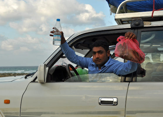 Есть и еще одна более-менее недавняя проблема – это кат. Жевание листьев Catha edulis очень распространено в Йемене и не считается чем-то кошмарным, но все же это наркотическое средство, запрещенное в некоторых странах (у нас, например). Свежие листья пережевывают, затем перемещают языком за щеку, периодически добавляя еще и еще. При этом народ одновременно может разговаривать, пить воду и даже курить сигарету (это, наверное, чтобы еще усилить эффект). На Сокотре жевание ката пока еще не настолько распространено, как на материковом Йемене, и многие местные жители против этой привычки. Однако, помимо эйфории и повышенной активности, кат еще и притупляет чувство голода, может быть, еще и поэтому его применение растет. Среди наших ребят половина жевали кат, причем именно те, кто помоложе, а более старшие товарищи их постоянно критиковали. Но несмотря ни на какую критику, каждый раз, когда мы заезжали в Хадибо, ребята добывали себе новые порции ката.