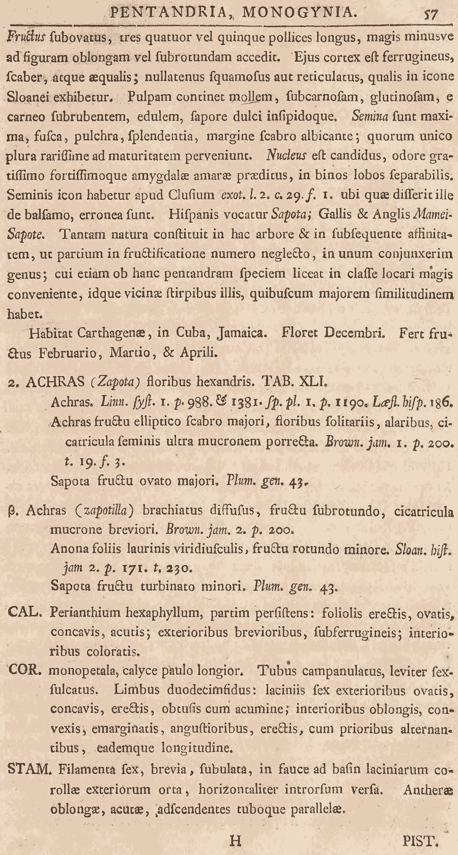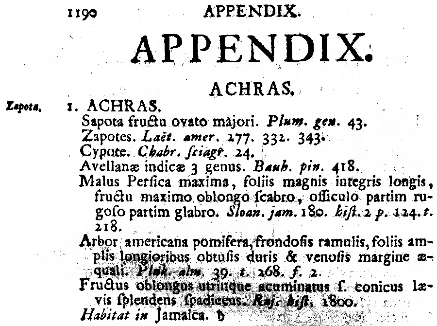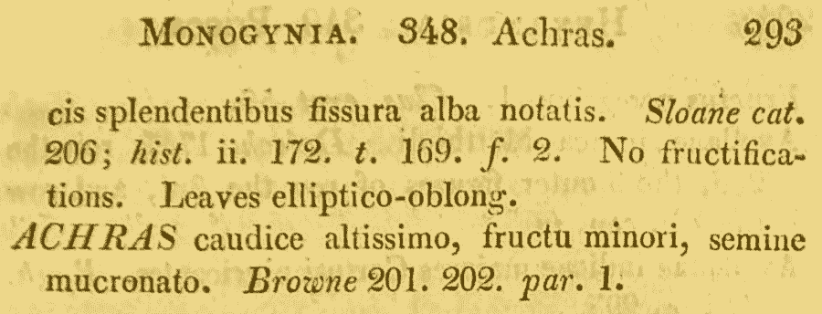 Протолог Achras zapota L. (Species Plantarum 2: 1190. 1753 [1 May 1753]):