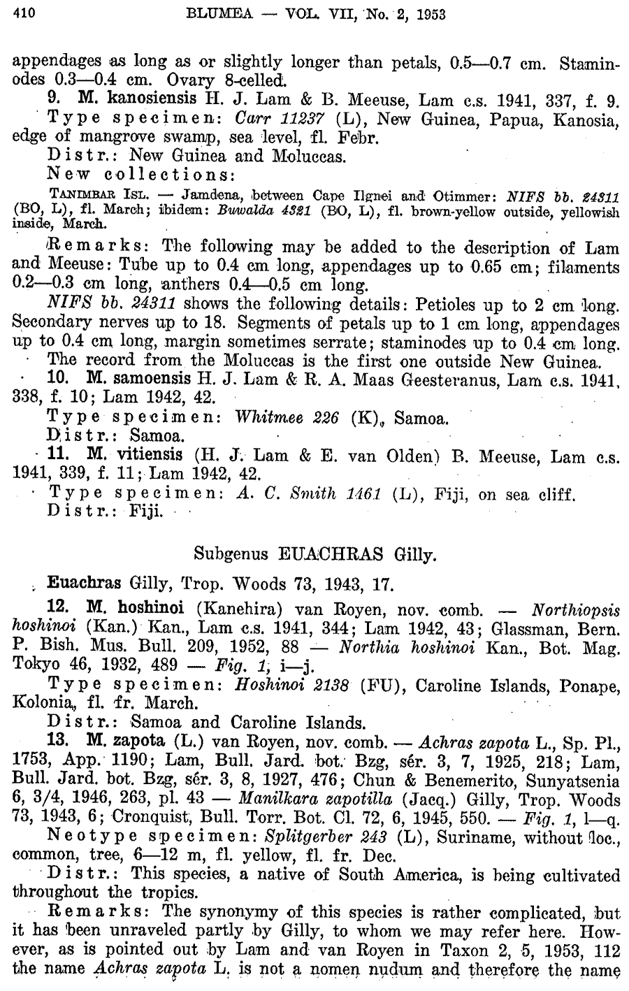 | Андрей Ковальчук | Обнародование комбинации Manilkara zapota (L.) P. Royen (Blumea 7(2): 410. 1953 [18 Dec 1953]):
