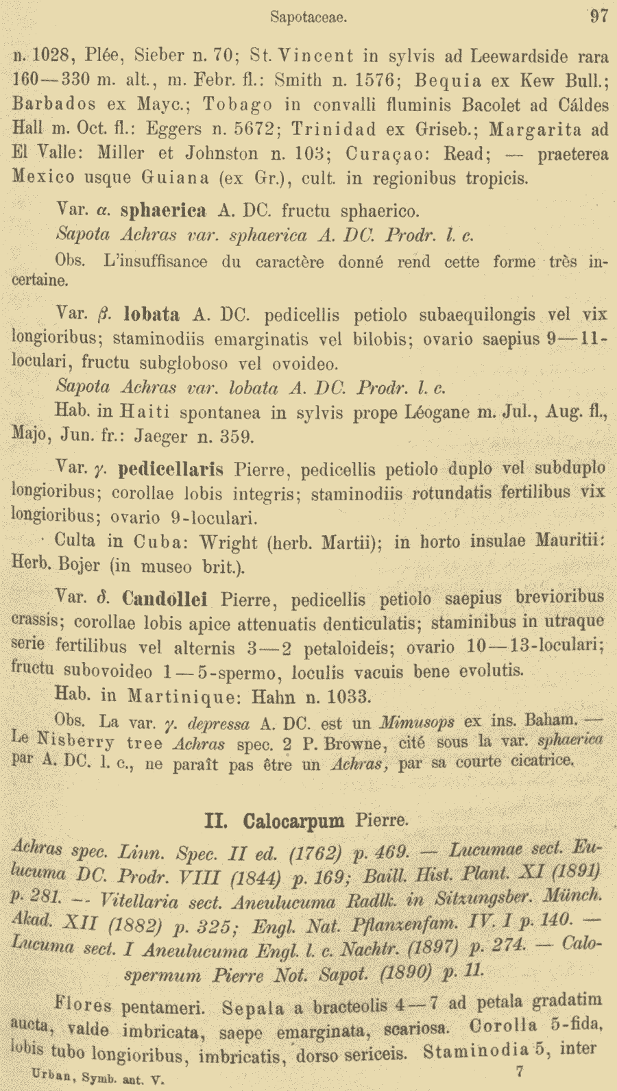 | Андрей Ковальчук | Протолог Achras sapota var. candollei Pierre и Achras sapota var. pedicellaris Pierre (Symbolae Antillanae seu Fundamenta Florae Indiae Occidentalis 5: 97. 1904):