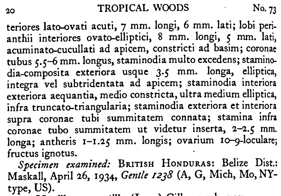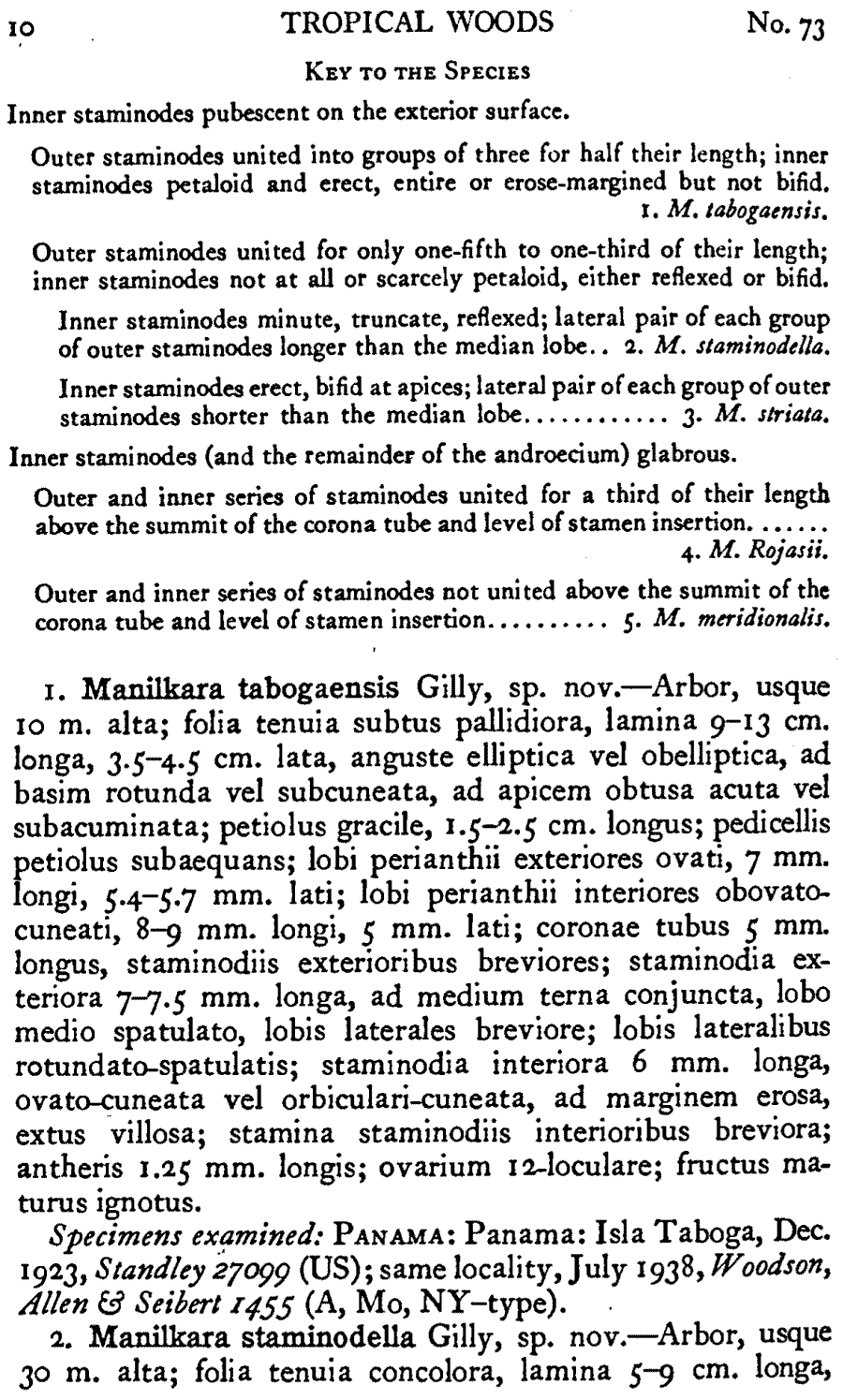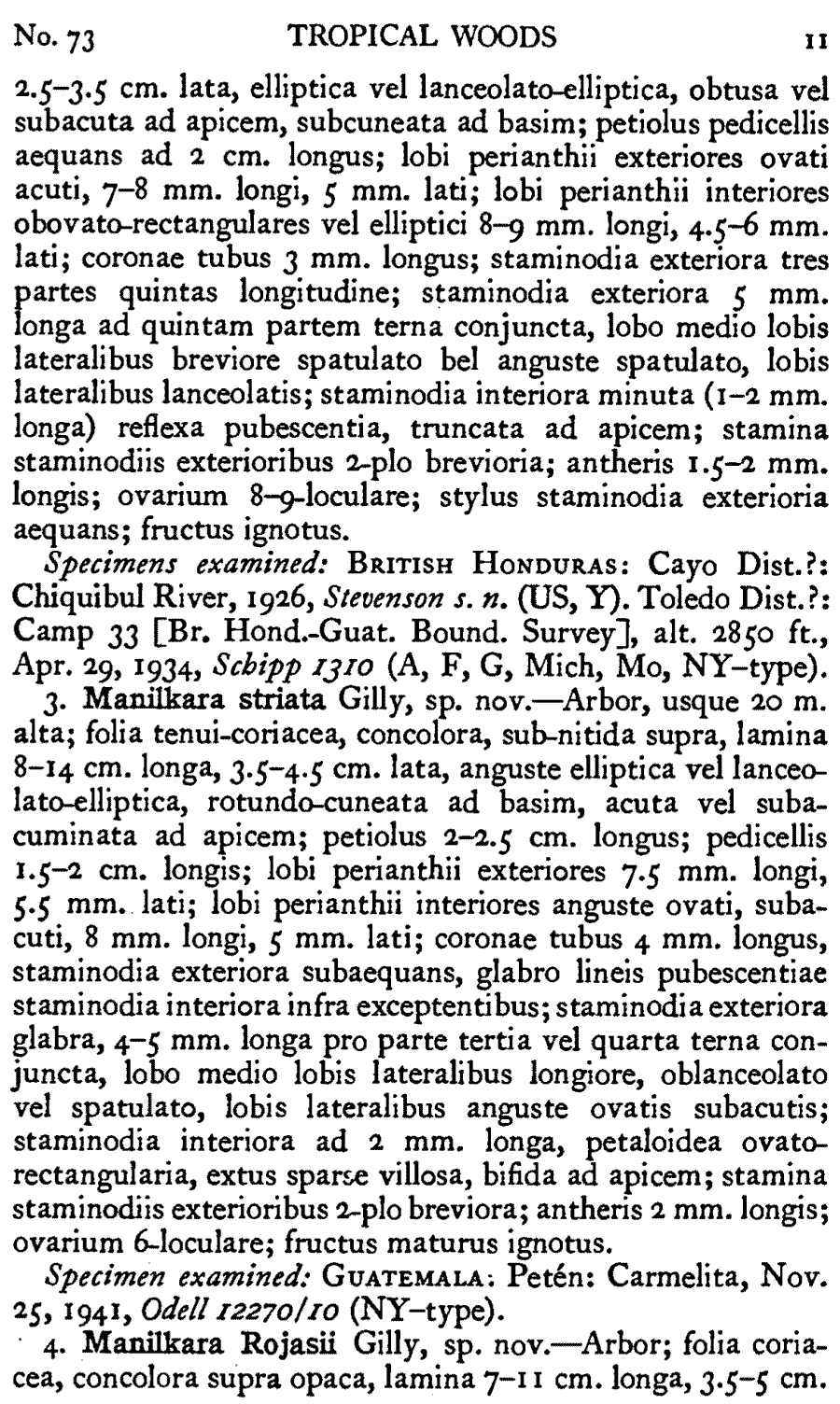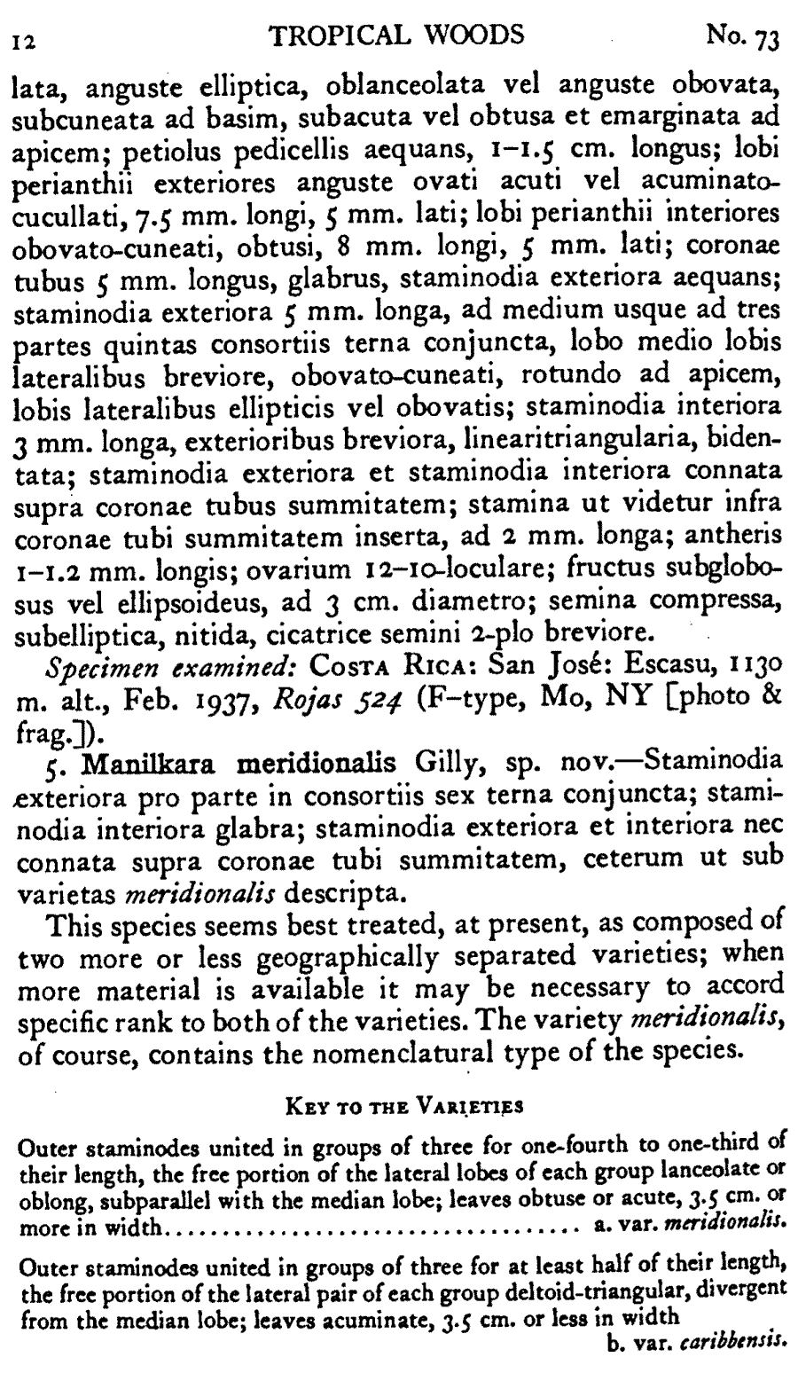 | Андрей Ковальчук | Протолог Manilkara meridionalis Gilly (Tropical Woods 73: 12. 1943), Manilkara meridionalis var. caribbensis Gilly (Tropical Woods 73: 13. 1943), Manilkara rojasii Gilly (Tropical Woods 73: 11. 1943), Manilkara striata Gilly (Tropical Woods 73: 11. 1943) и Manilkara tabogaensis Gilly (Tropical Woods 73: 10. 1943):