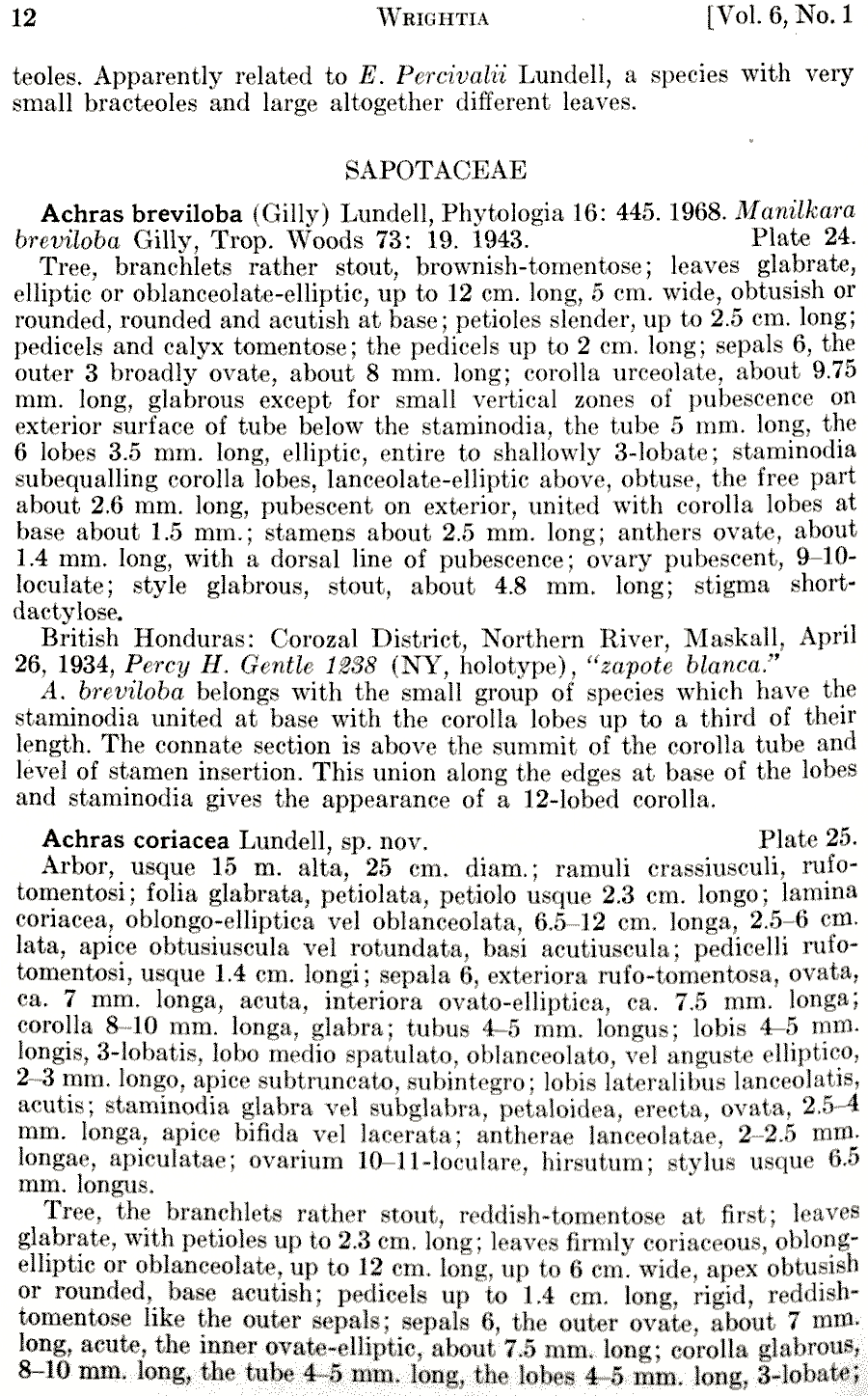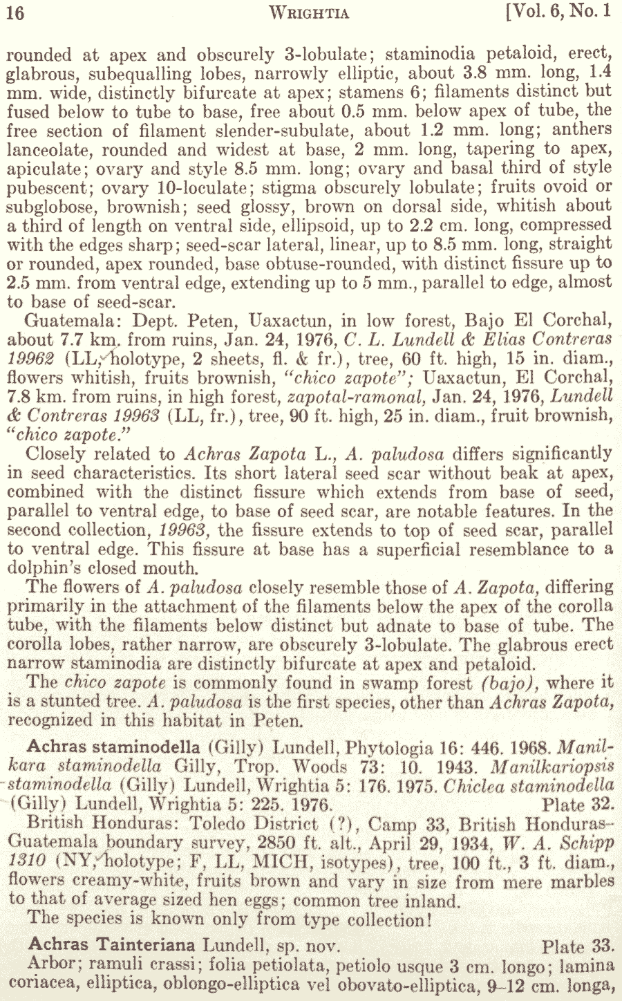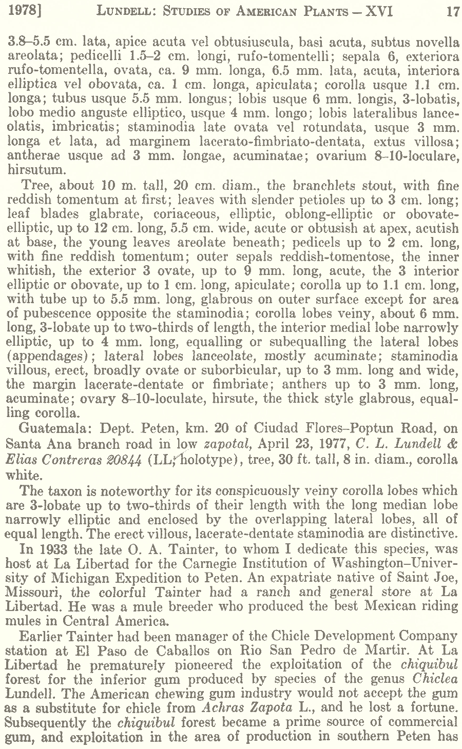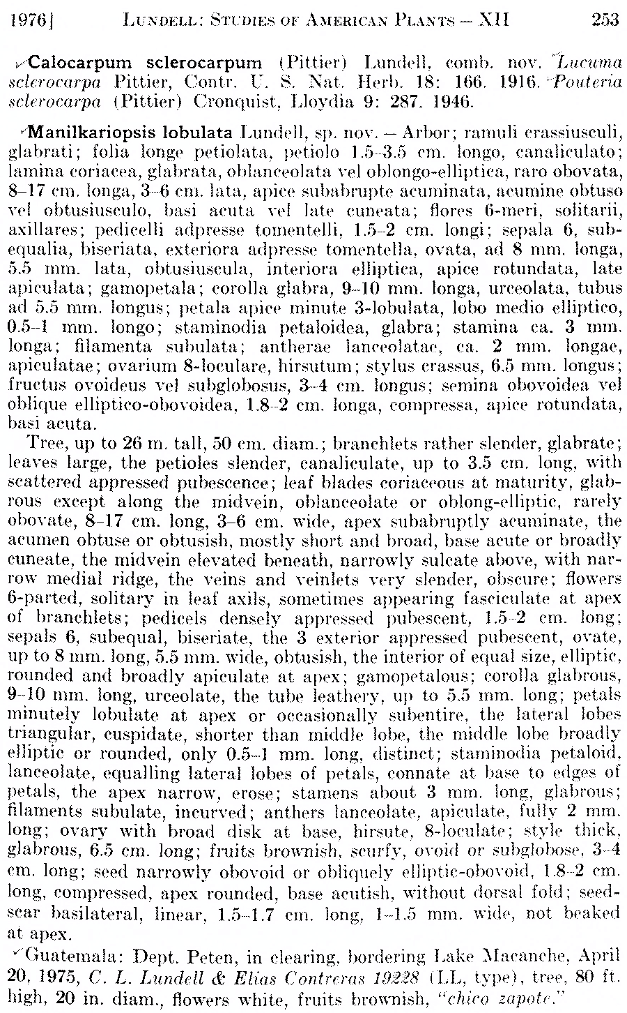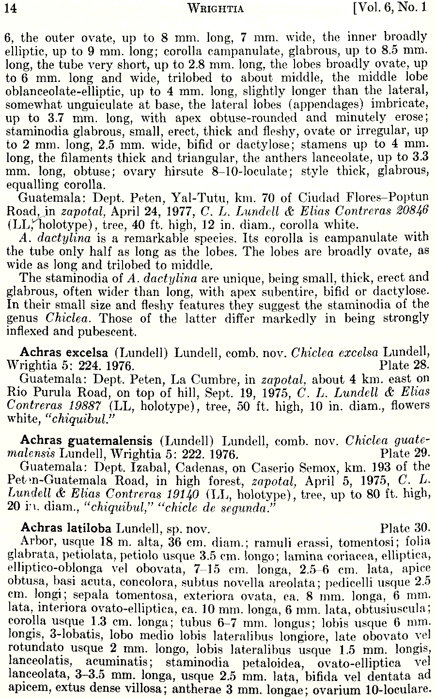 | Андрей Ковальчук | Протолог Achras coriacea Lundell (Wrightia 6(1): 12. 1978), Achras dactylina Lundell (Wrightia 6(1): 13. 1978), Achras latiloba Lundell (Wrightia 6(1): 14. 1978), Achras paludosa Lundell (Wrightia 6(1): 15. 1978) и Achras tainteriana Lundell (Wrightia 6(1): 16. 1978):