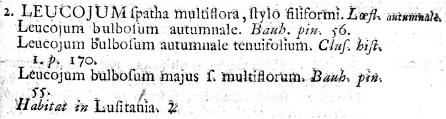 Протолог Leucojum autumnale L. (Species Plantarum 1: 289. 1753 [1 May 1753]):