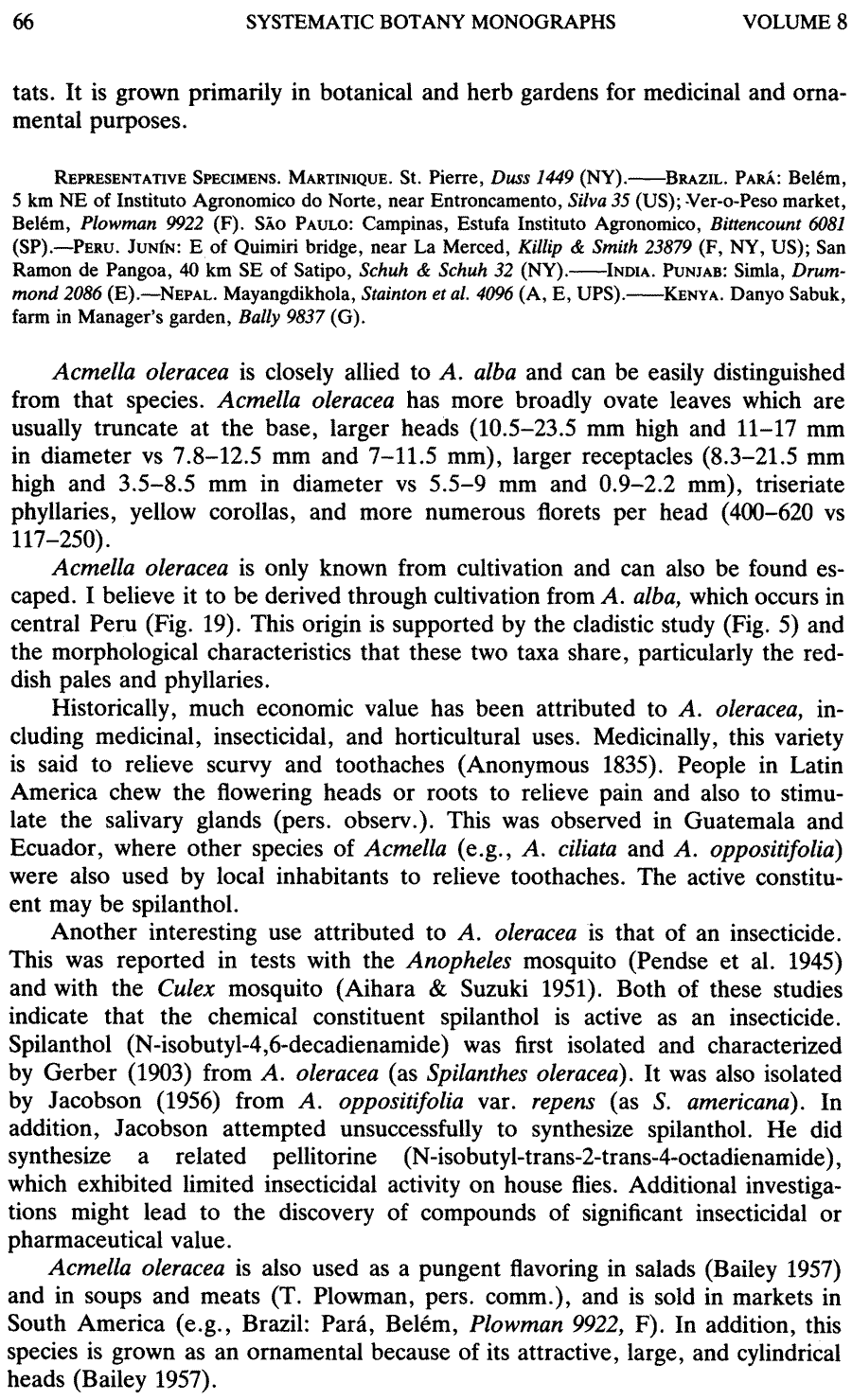 Протолог Spilanthes oleracea L. (Systema Naturae, ed. 12, 2: 534. 1767 [15-31 Oct 1767]):
