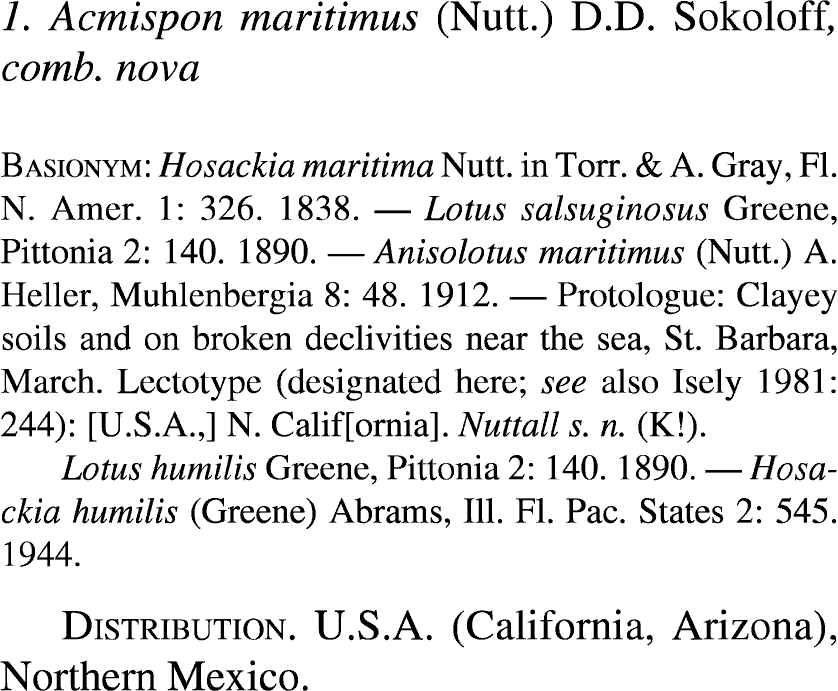 Протолог Hosackia maritima Nutt. (A Flora of North America (Torr. & A. Gray) 1(2): 326. 1838 [Oct 1838]):