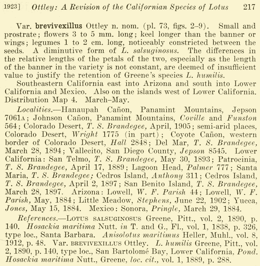 | Андрей Ковальчук | Протолог Lotus salsuginosus var. brevivexillus Ottley (University of California Publications in Botany 10(3): 217. 1923):