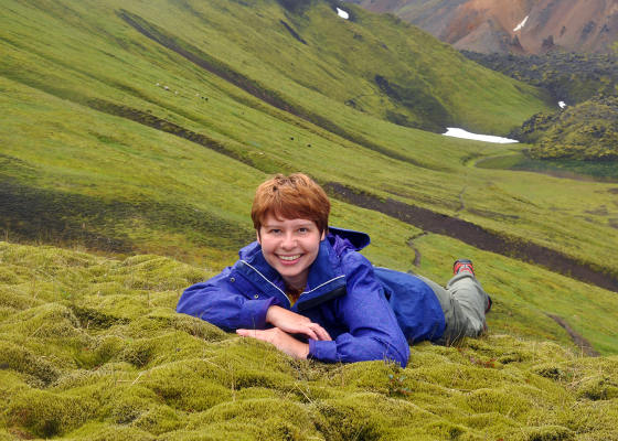 На другой день мы ездили в вулканическую местность Ландманналаугар. Дорога через лавовые поля, конечно, не самая простая, на обычной легковушке, наверное, кое-где и не проехать, особенно в дождливую погоду. Но в основном это вполне привычная для нас каменистая дорога типа «стиральная доска», т.е. ничего сверхъестественного. Зато красота необыкновенная! Сначала проезжаешь черные лавовые склоны, поросшие какими-то потрясающими нежно-зелеными мхами, а потом видишь заполненные водой старые кратеры…