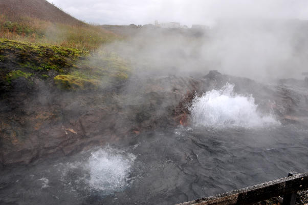 | Марина Скотникова | После этого мы поехали дальше на юг, в сторону Рейкьявика. По пути заезжали на геотермальный источник Дейльдартунгюхвер неподалеку от города Боргарнес. Этот мощный источник снабжает горячей водой все окрестные населенные пункты, а поскольку температура воды там 97°C, то в ней можно без проблем варить яйца (что мы и сделали!  )