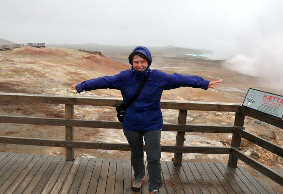 | Марина Скотникова | Ну, а напоследок мы съездили на геотермальное поле близлежащего полуострова Рейкьянес. К этому моменту погода окончательно испортилась, ледяной дождь и сильный ветер как будто хотели намекнуть нам, что пора бы уже уезжать.