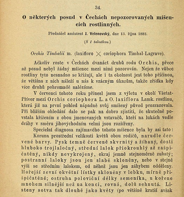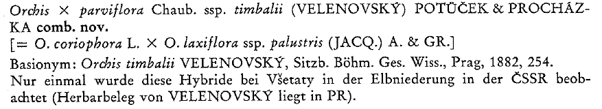 Протолог Orchis × timbalii Velen., Sitzungsberichte der königl. böhmischen Gesellschaft der Wissenschaften in Prag 1882: 254[-256].