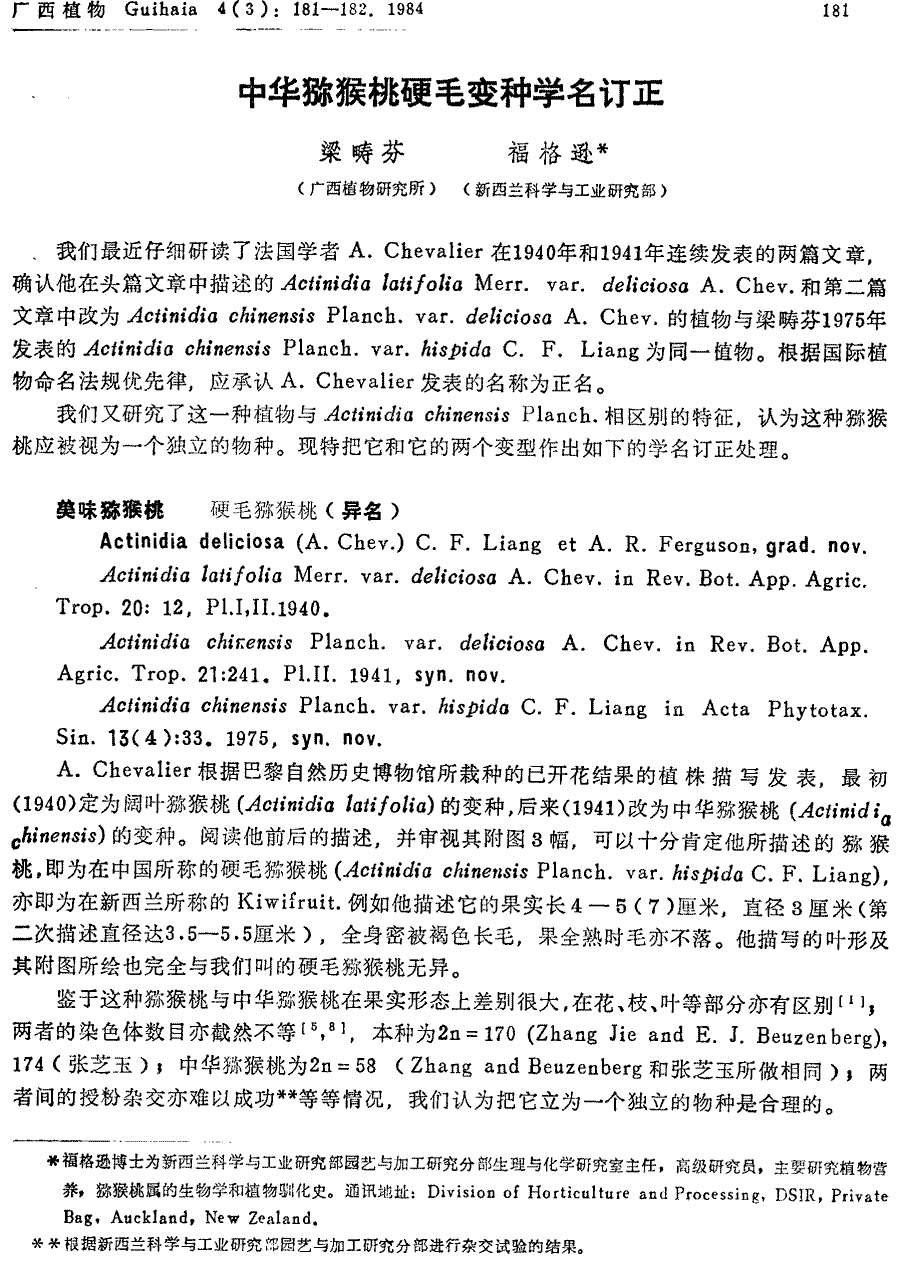 | Андрей Ковальчук | Обнародование комбинации Actinidia deliciosa (A. Chev.) C.F. Liang & A.R. Ferguson (Guihaia 4(3): 181. 1984):