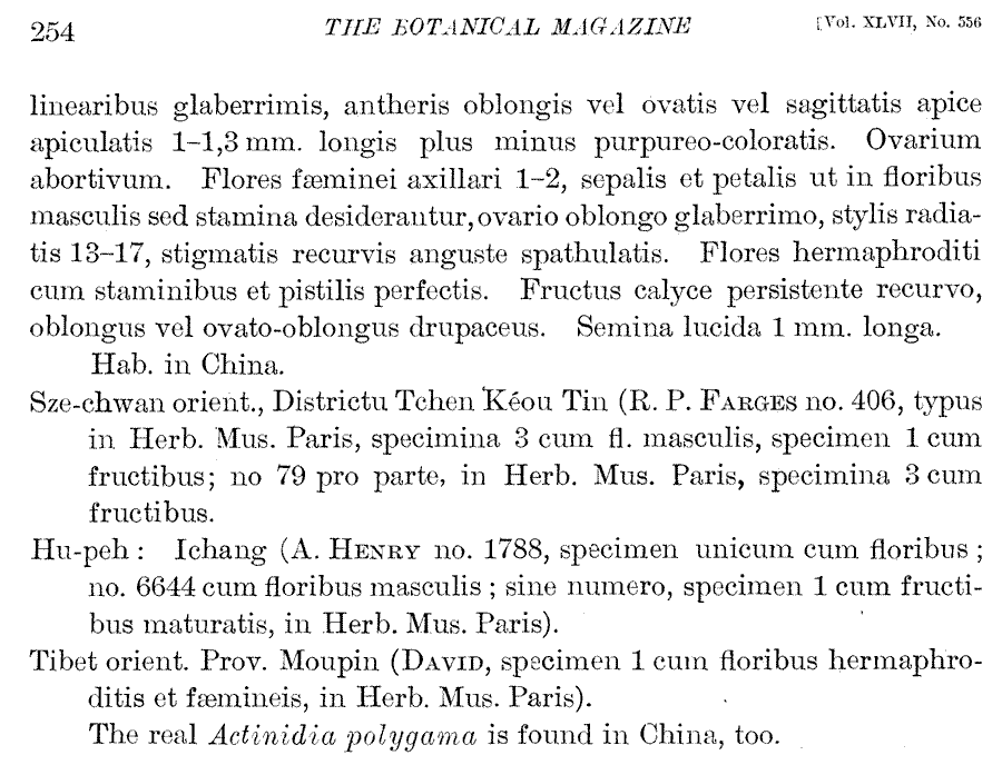 | Андрей Ковальчук | Может, поменять авторство на Actinidia polygama (Siebold & Zucc.) Planch. ex Maxim.? Сейчас заглянул в IPNI и в Tropicos - в обоих источниках местом обнародования считается работа Максимовича: