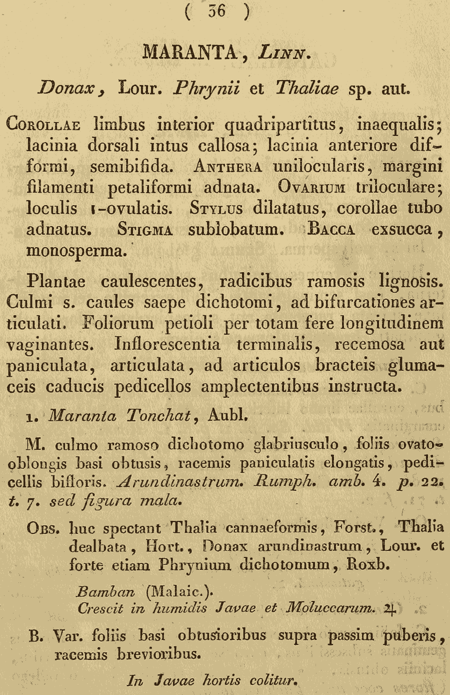 Протолог Maranta tonchat Blume (Enumeratio Plantarum Javae 1: 36. 1827):