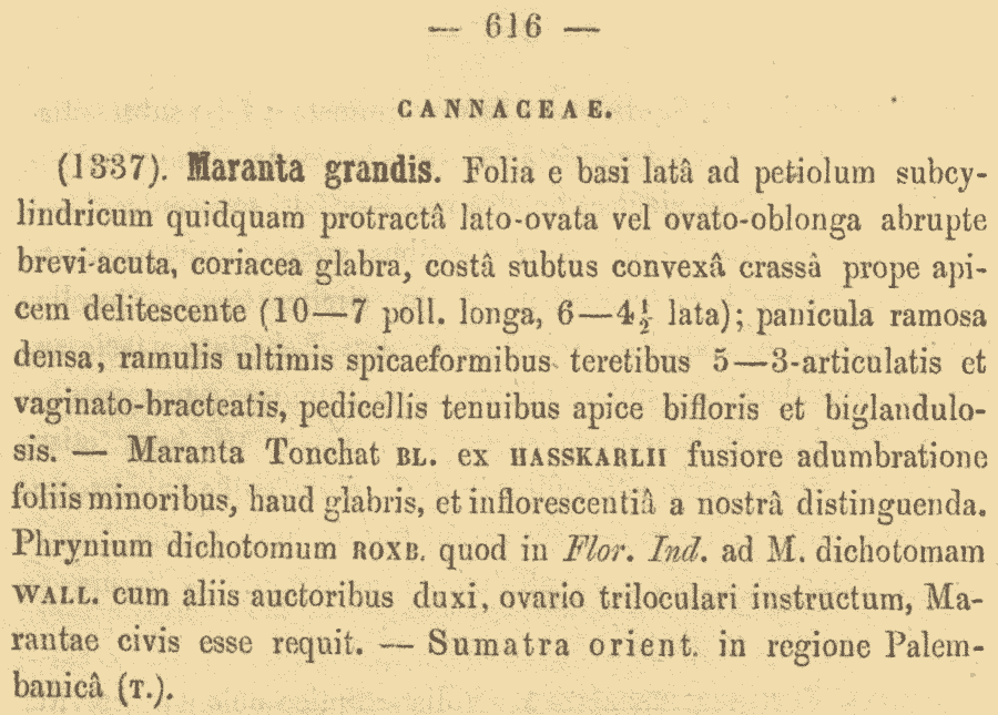 Протолог Maranta grandis Miq. (Flora van Nederlandsch Indie, Eerste Bijvoegsel 3: 616. 1861):