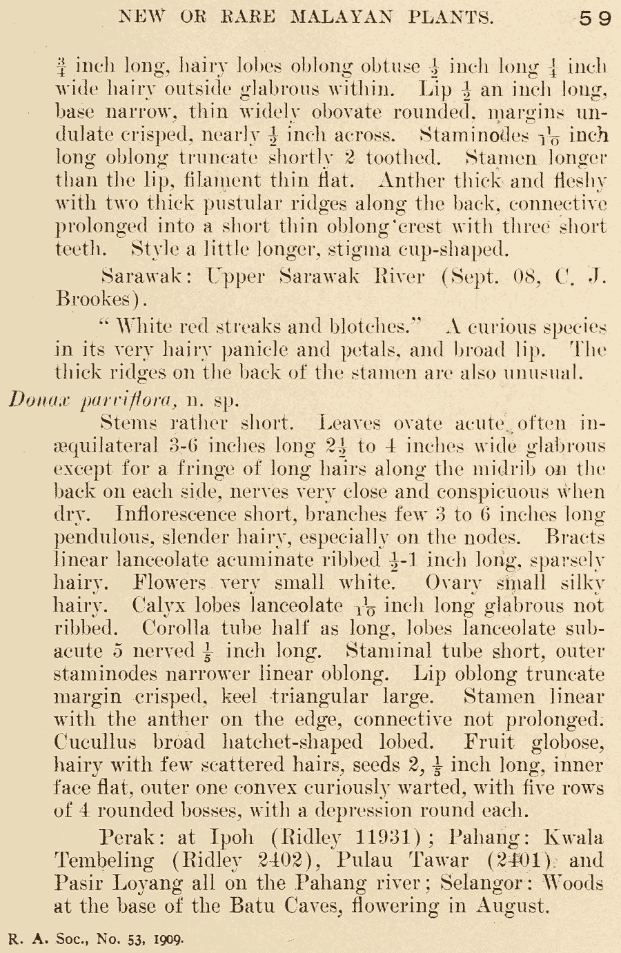 Протолог Donax parviflora Ridl. (Journal of the Straits Branch of the Royal Asiatic Society 54: 59. 1910):