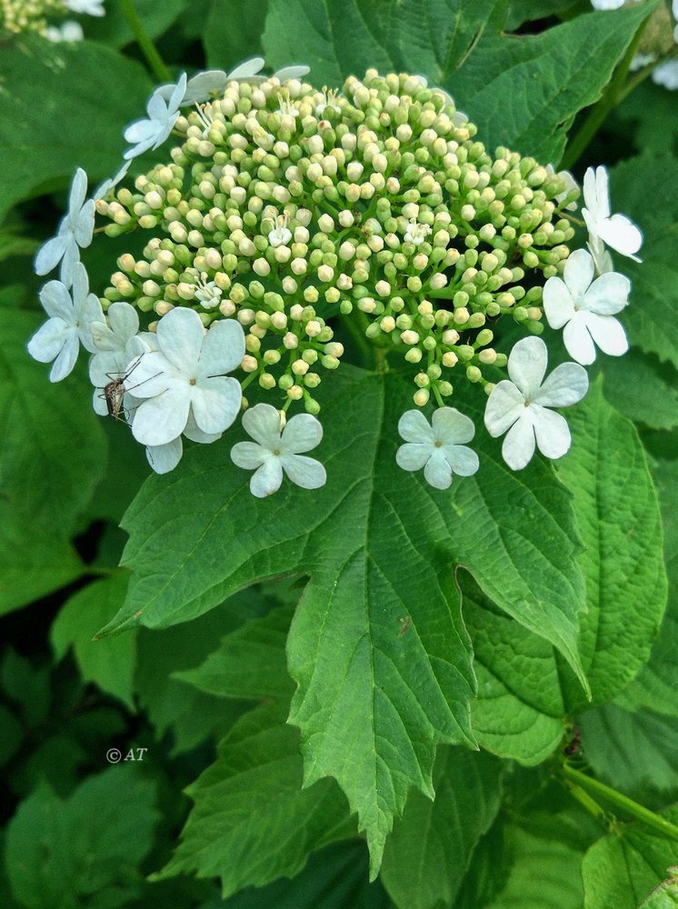 А вот краевые цветки у калины мне в детстве казались вырезанными из бумаги. Когда они опадают и лежат на земле рядом с кустом, то не верится, что они настоящие. Даже сейчас мне удивительно их видеть. Красивое растение - калина. Скоро листья покраснеют, потом опадут, а ярко-красные гроздья будут радовать всю зиму. Здесь, у нас. Где-то, может, уже и покраснели, и опали. Или наоборот  |