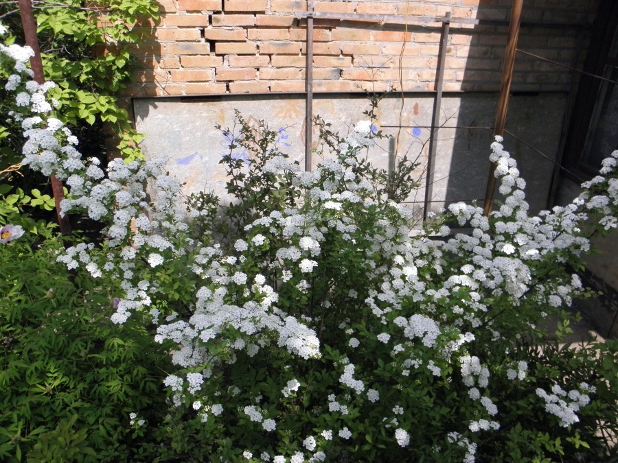 Помогите определить вид таволги. Растение приобретено в питомнике около Кактусовой оранжереи Никитского ботанического сада как таволга березолистная, куст высотой 1,5 м, побеги восходящие, цветет одновременно с таволгой Вангутта, соцветия подобные, листья трехлопастные, салатовые.