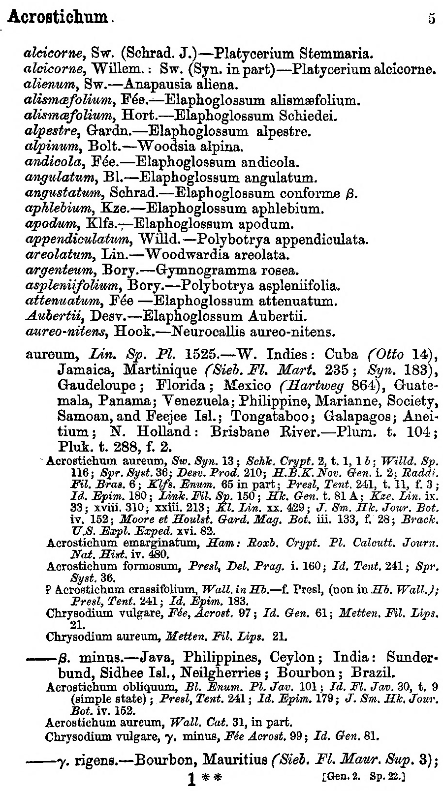 Протолог Acrostichum areolatum L. (Species Plantarum 2: 1069. 1753 [1 May 1753]):