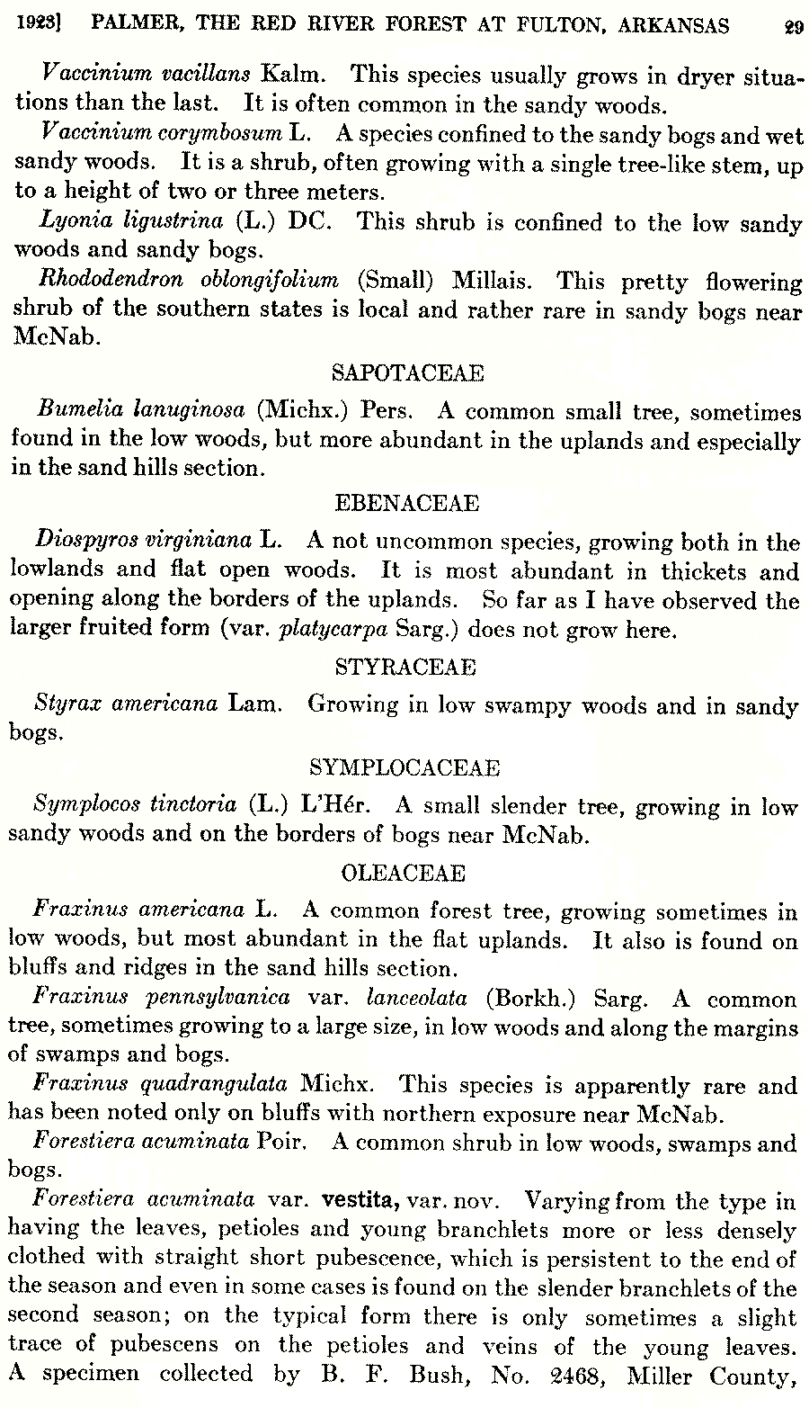 | Андрей Ковальчук | Протолог Forestiera acuminata var. vestita E.J. Palmer (Journal of the Arnold Arboretum 4(1): 29–30. 1923):