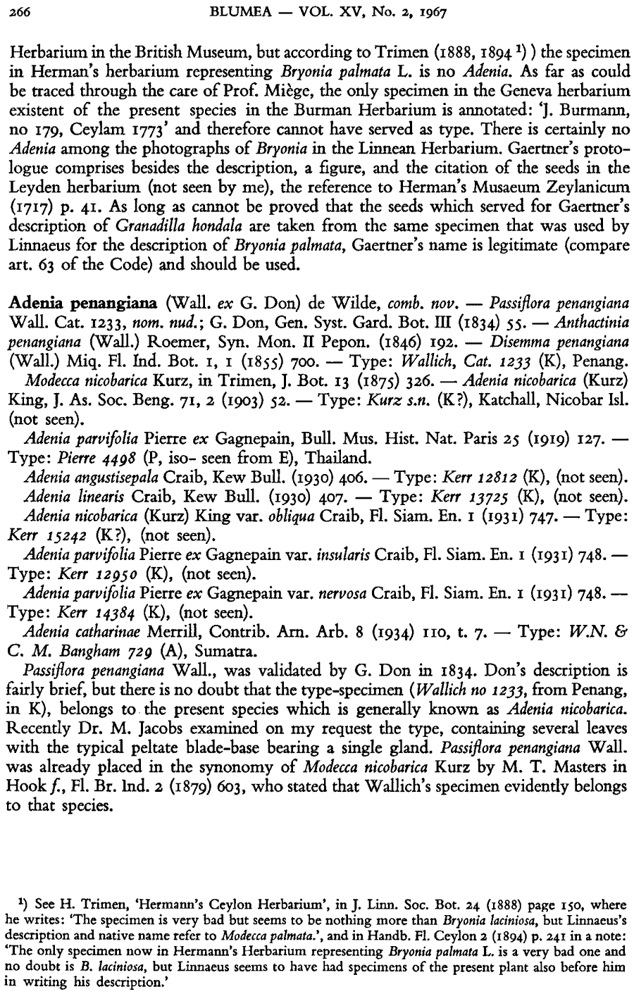 | Андрей Ковальчук | Обнародование комбинации Adenia penangiana (Wall. ex G. Don) W.J. de Wilde (Blumea 15(2): 266. 1967):