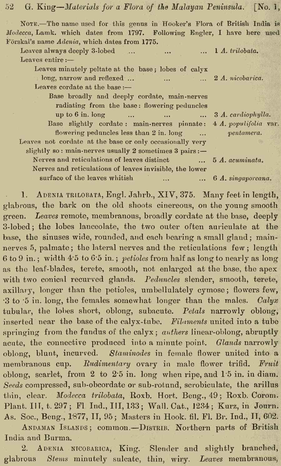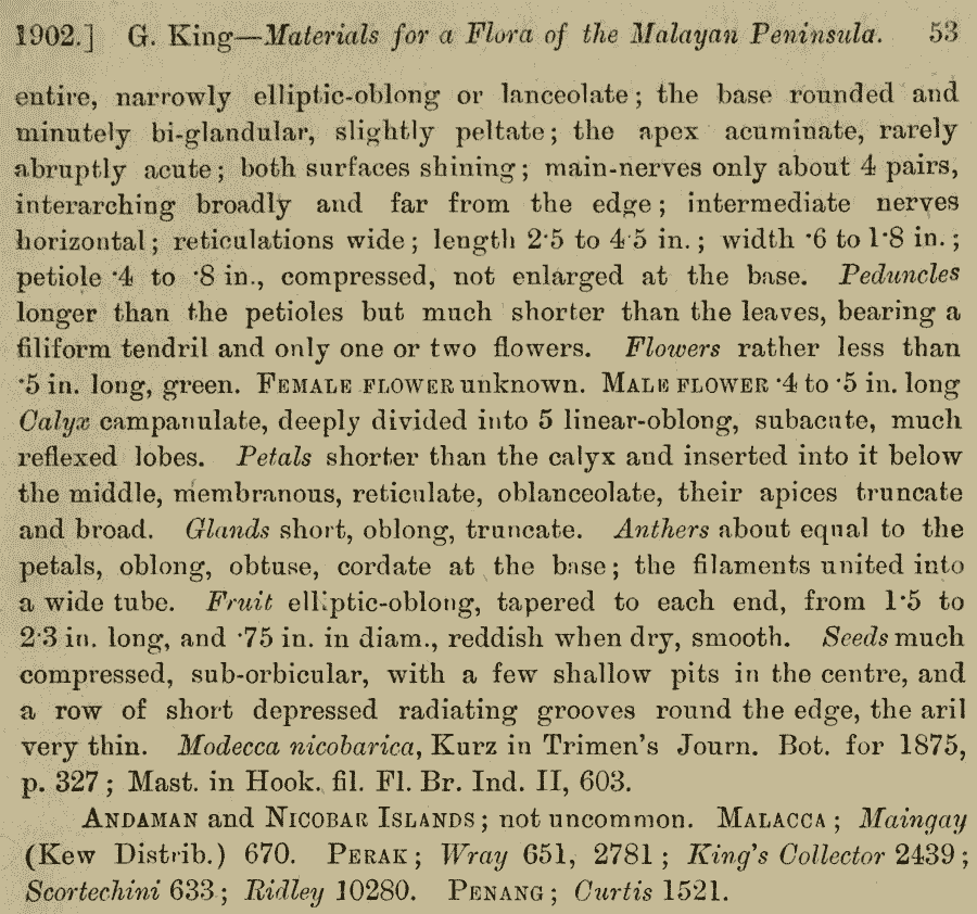 Протолог Modecca nicobarica Kurz (Journal of Botany, British and Foreign 13(155): 326. 1875):