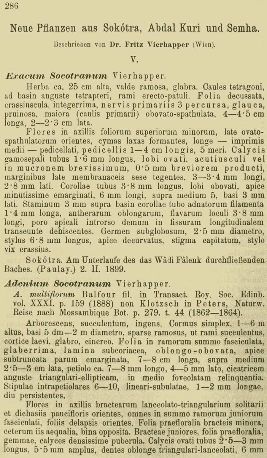 Протолог Adenium socotranum Vierh. (Oesterreichische Botanische Zeitschrift 54: 286. 1904):