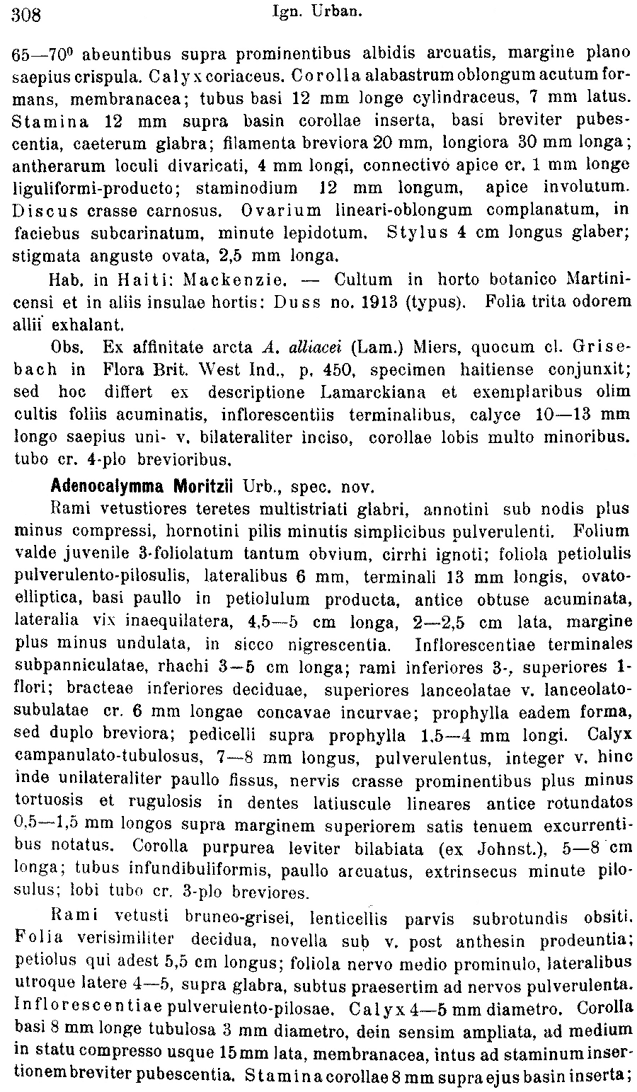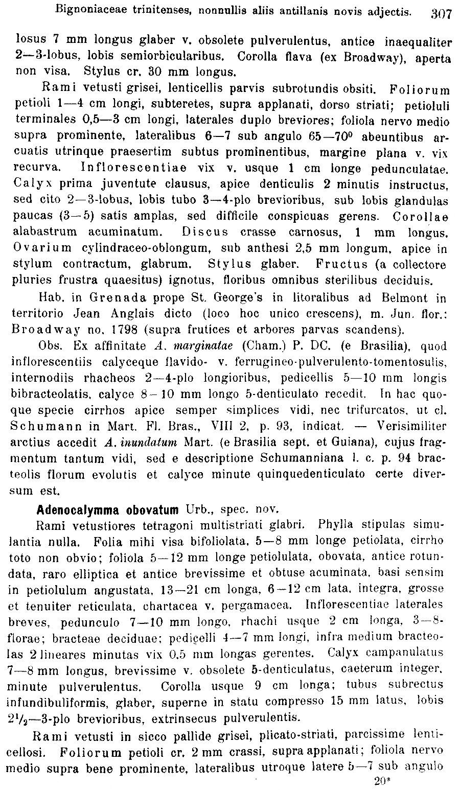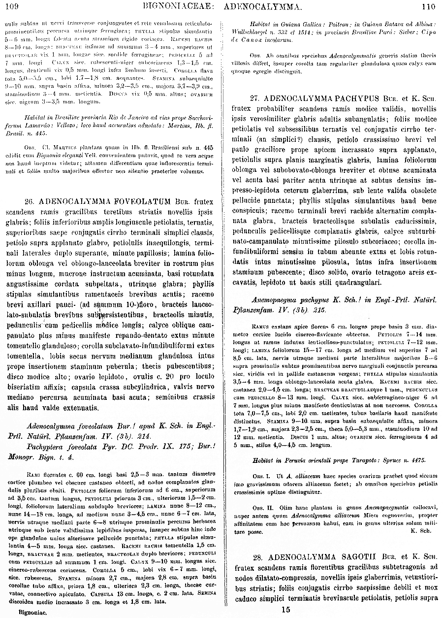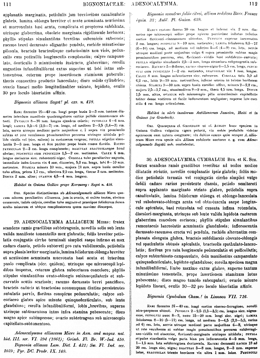Протолог Adenocalymma sagotii Bureau & K. Schum. (Flora Brasiliensis [Martius] 88(2): 110. 1896):