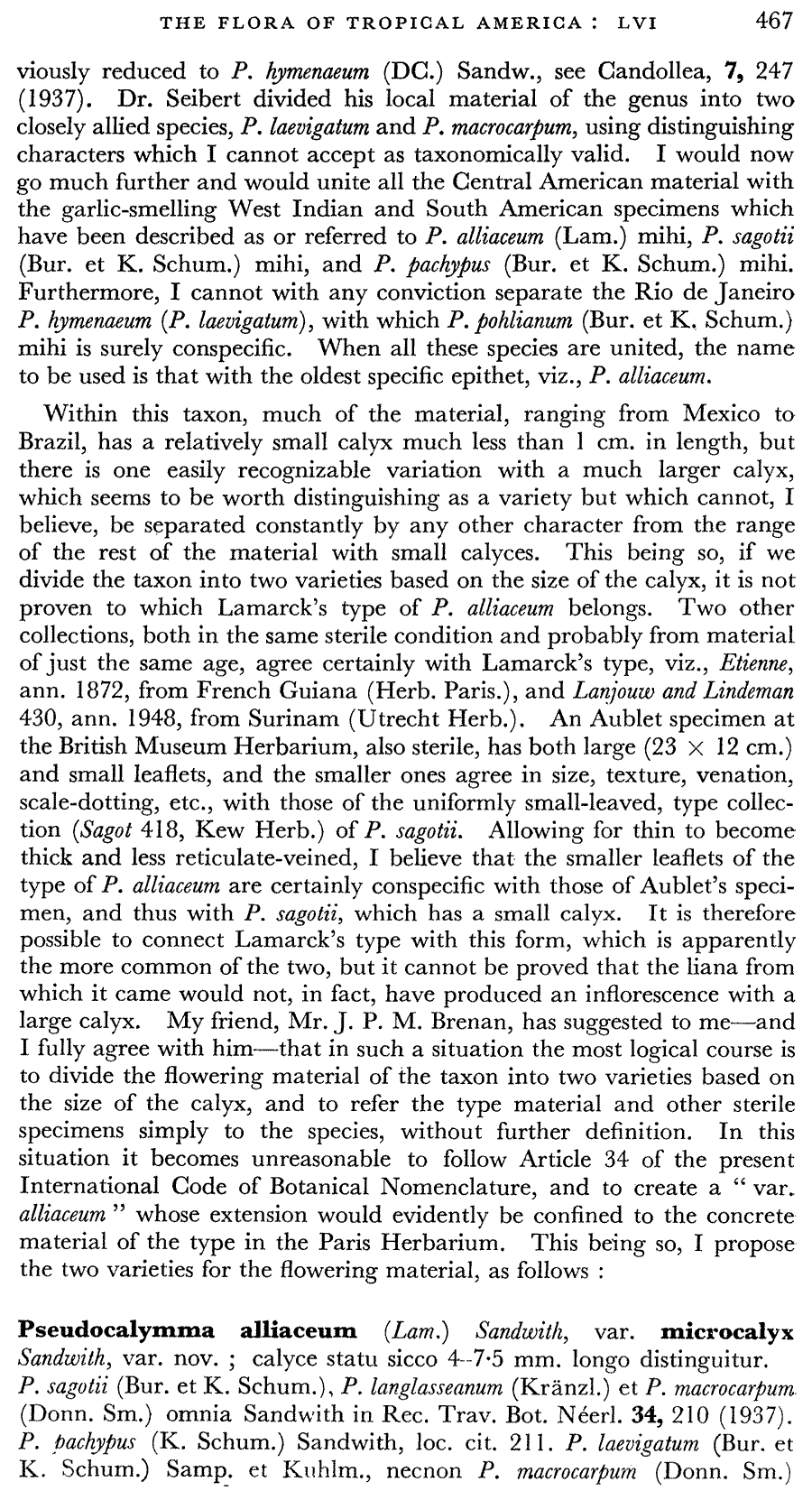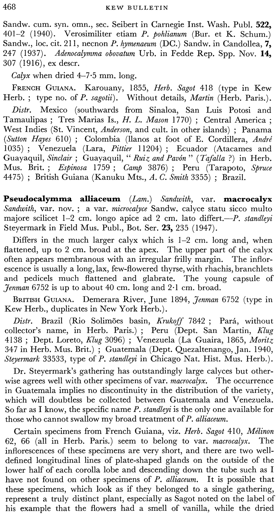 Протолог Pseudocalymma alliaceum var. macrocalyx Sandwith (Kew Bulletin 8(4): 468–469. 1953[1954]):