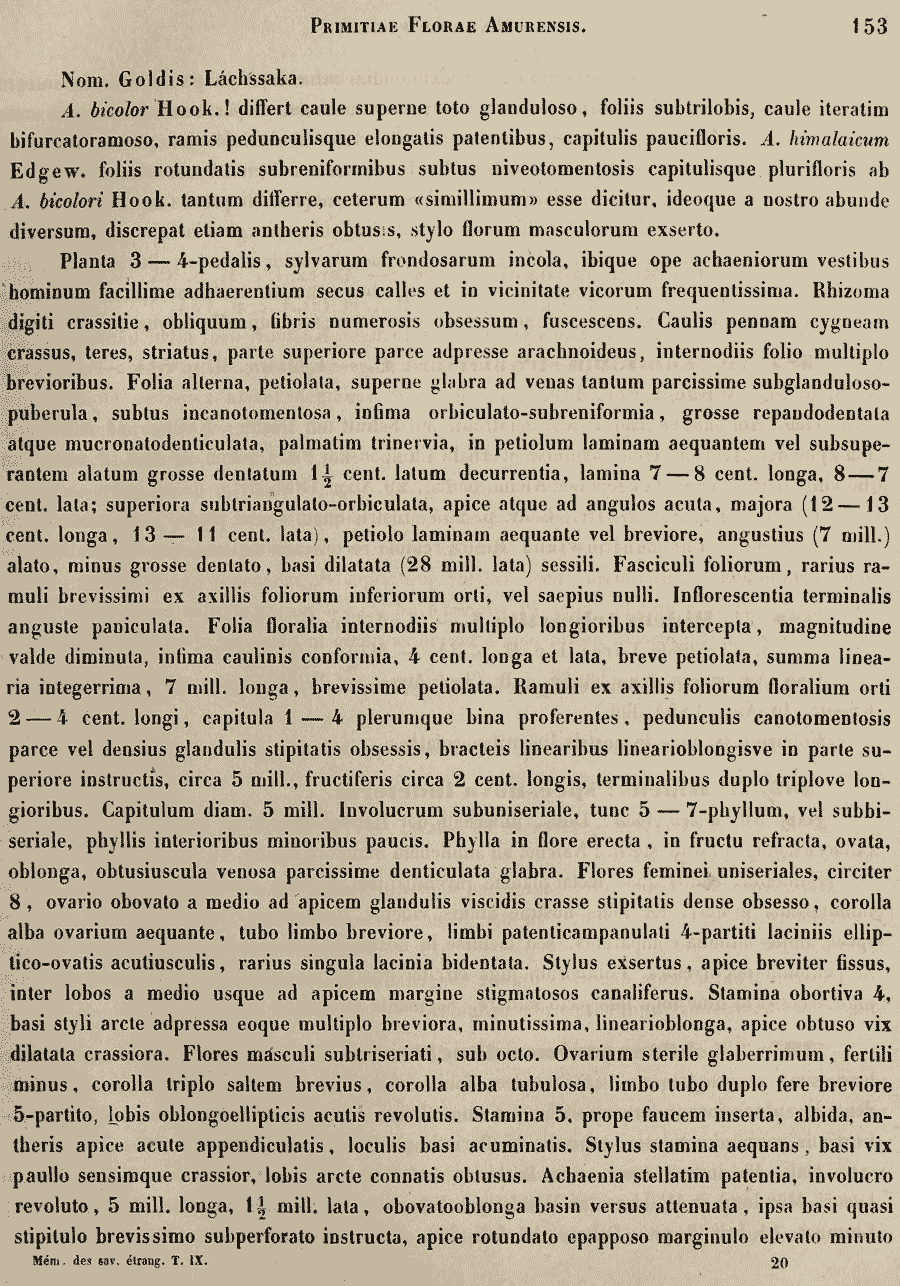 Протолог Adenocaulon adhaerescens Maxim. (Mémoires Presentes a l'Académie Impériale des Sciences de St.-Pétersbourg par Divers Savans et lus dans ses Assemblées 9 (Primitiae Florae Amurensis): 152. 1859):