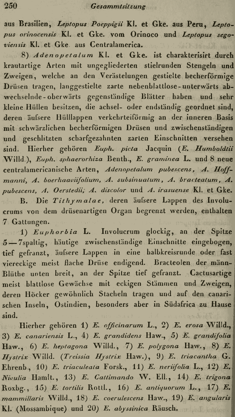 Протолог рода Adenopetalum Klotzsch & Garcke (Monatsberichte der Königlich Preussischen Akademie der Wissenschaften zu Berlin 1859: 250. 1859[1860]; лектотип: Adenopetalum gramineum (Jacq.) Klotzsch & Garcke (≡ Euphorbia graminea Jacq.; designated by Wheeler, Contr. Gray Herb. 127: 58 (1939: