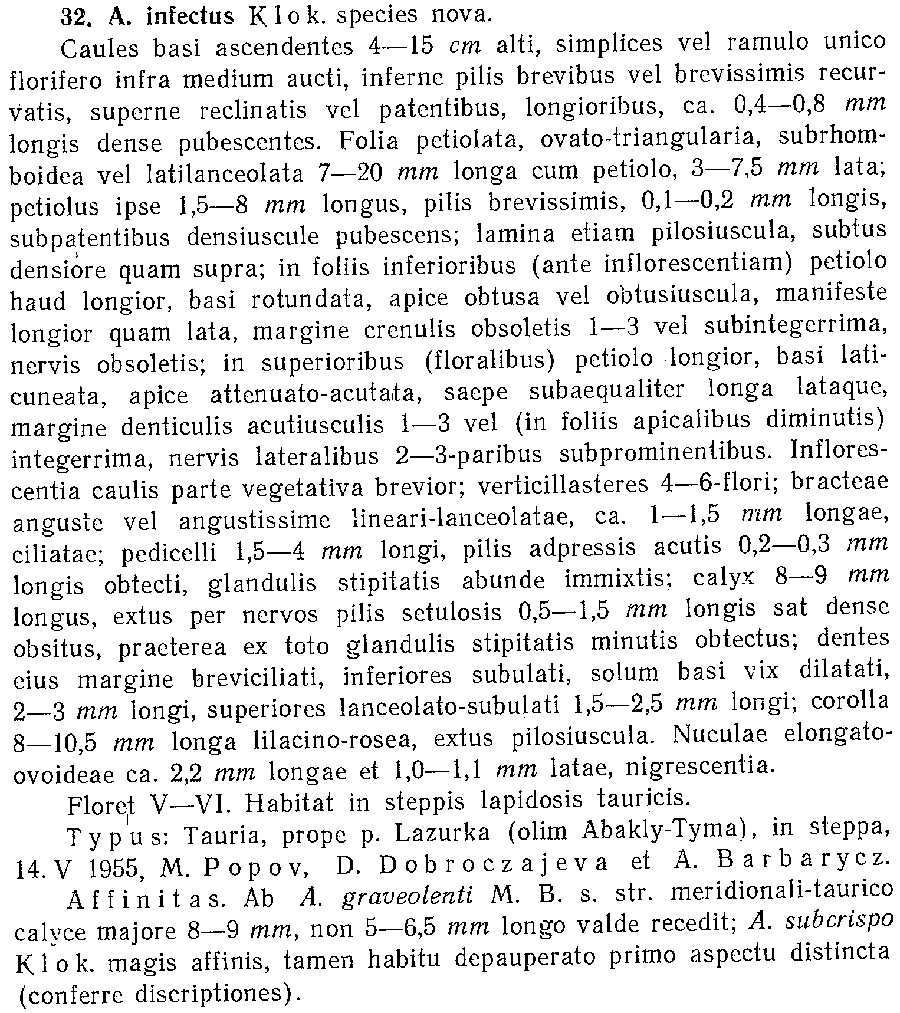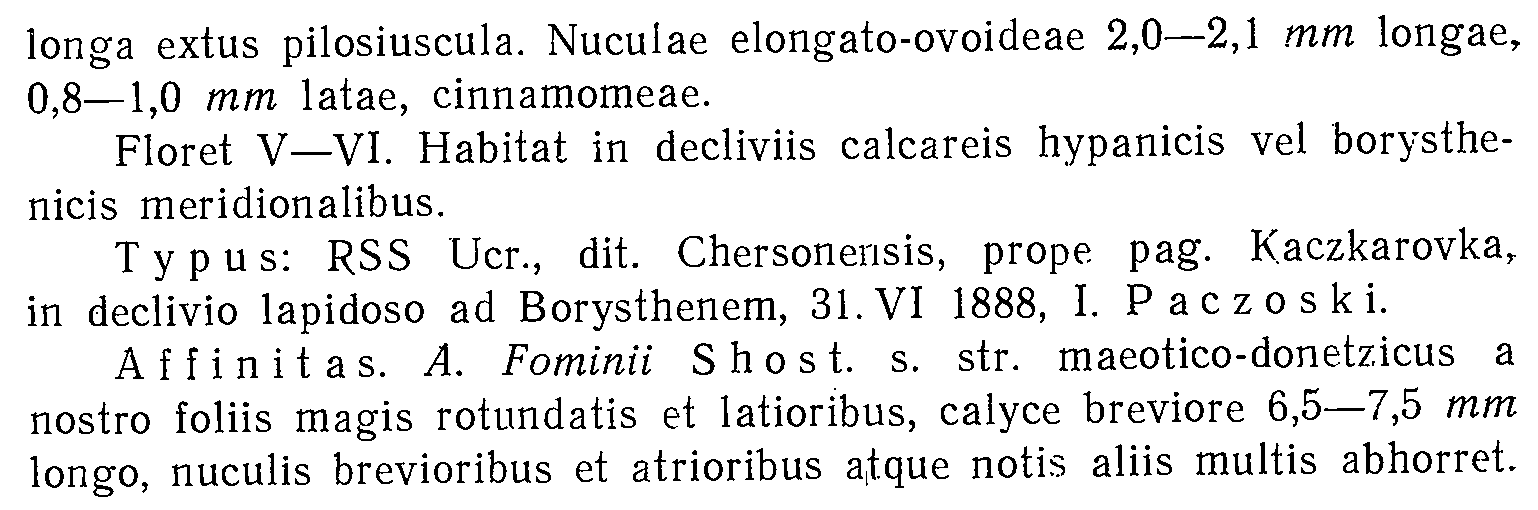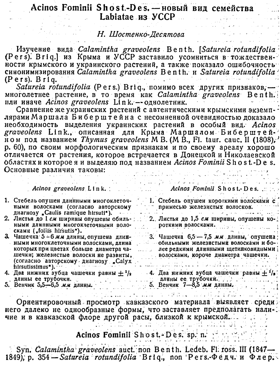 Протолог Acinos fominii Des.-Shost. (Збірник праць, присвячений пам'яті академіка О.В. Фоміна: 39-44. 1938):