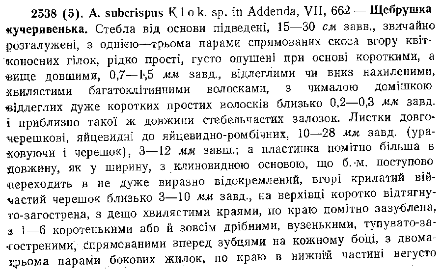 | Андрей Ковальчук | Протолог Acinos subcrispus Klokov (Флора УРСР 9:662(-663), 278-280. 1960):