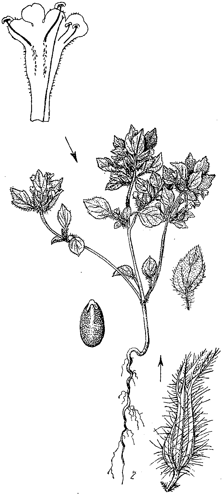 | Андрей Ковальчук | Рисунок Acinos graveolens (M. Bieb.) Link из издания "Флора СССР", т. 21, табл. XXIII (облик растения, развёрнутый венчик, орешек, лист, чашечка):