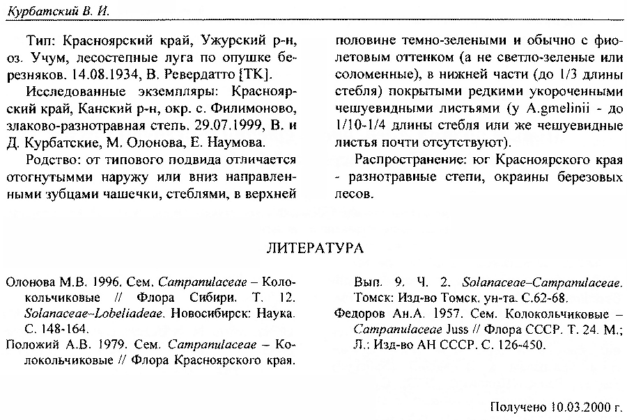 Adenophora subjenisseensis Справка |