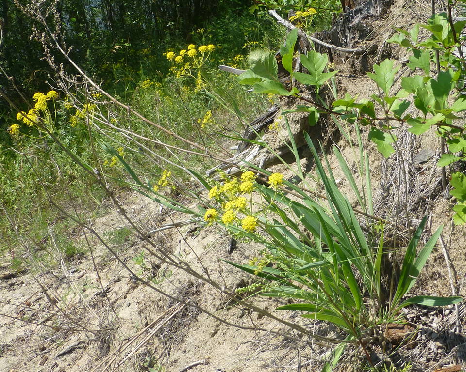 Растения на бедной почве в высоту около 20 см, на берегу реки (на фото) до полуметра.