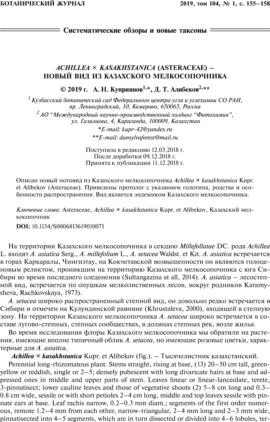 Achillea × kasakhstanica Справка |