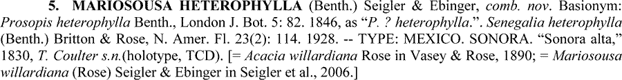 | Андрей Ковальчук | Обнародование комбинации Mariosousa heterophylla (Benth.) Seigler & Ebinger (Phytologia 100(4): 257. 2018):