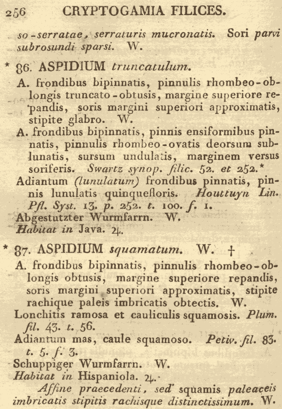 Протолог Aspidium squamatum Willd. (Species Plantarum, ed. 4, 5(1): 256. 1810):
