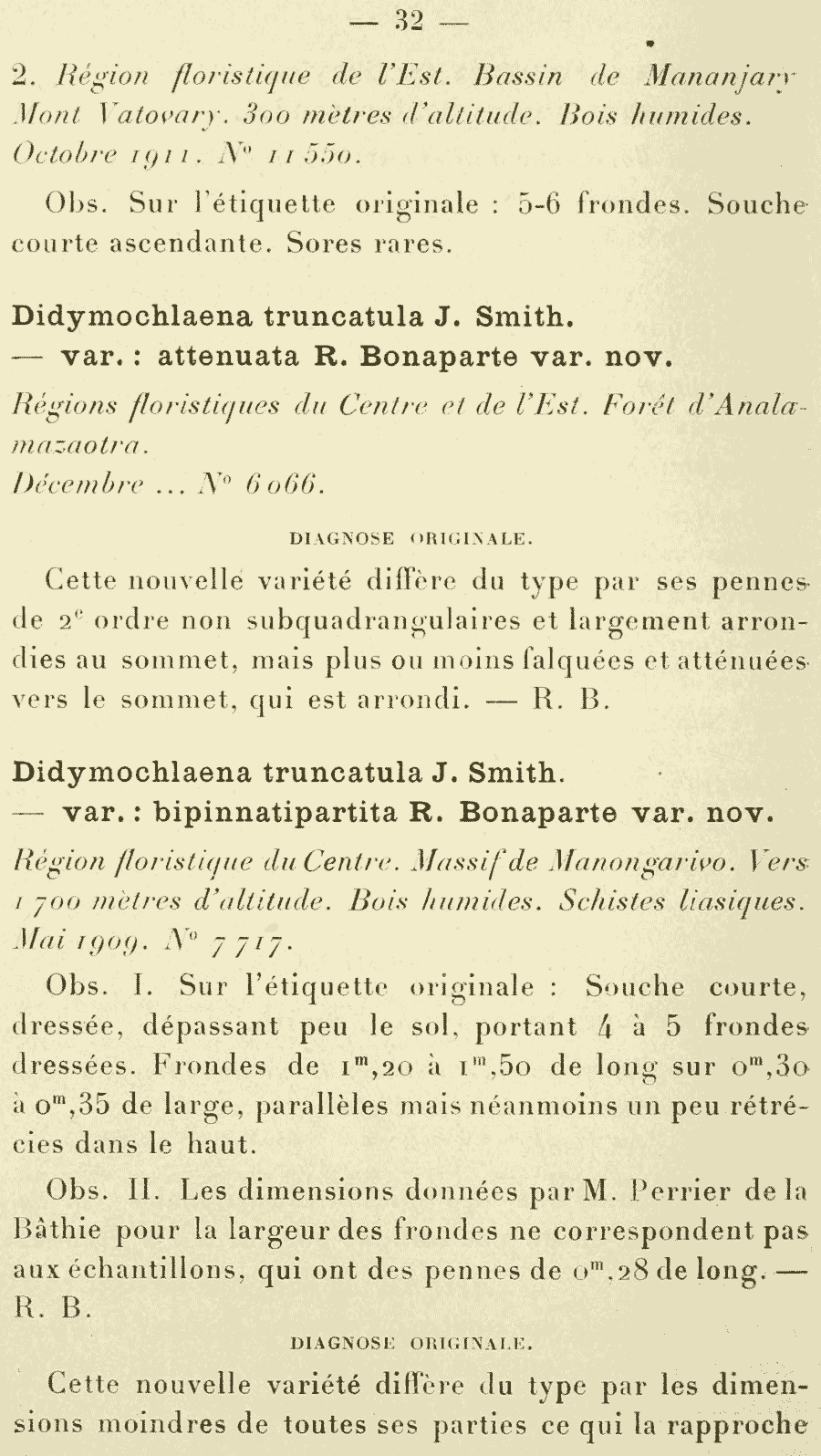 | Андрей Ковальчук | Протолог Didymochlaena truncatula var. attenuata Bonap., Didymochlaena truncatula var. bipinnatipartita Bonap. (Notes Ptéridologiques 16: 32. 1925) и Didymochlaena truncatula var. microphylla Bonap. (Notes Ptéridologiques 16: 33. 1925):